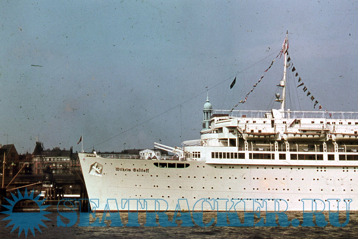 Доп. информация: Вильгельм Густлофф» был спущен со стапелей 5 мая 1937г. Длина корабля составляла 208,5м, ширина 23,5м. Теплоход мог перевозить 1463, при численности экипажа в 417 человек. Он имел 10 посадочных палуб. По своей комфортабельности лайнер был одним из лучших судов того времени