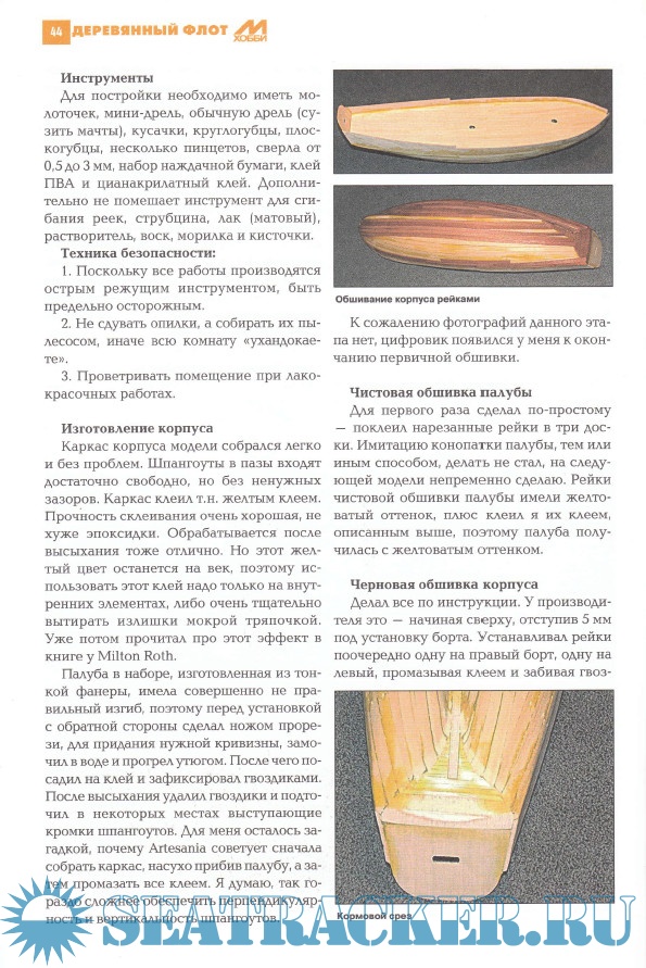 Описание: Издание представляет собой подборку статей, опубликованных ранее в журнале "М-Хобби", посвященных постройке деревянных моделей кораблей. В книге рассматриваются различные способы их изготовления как самостоятельно, так и из фабричных наборов. Даются сравнительные характеристики наборам разных производителей и описание специального инструмента.