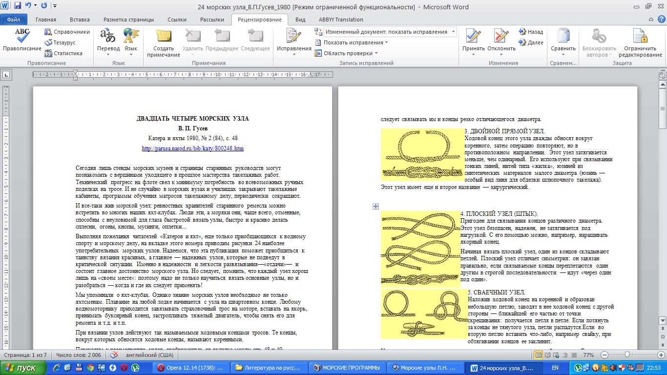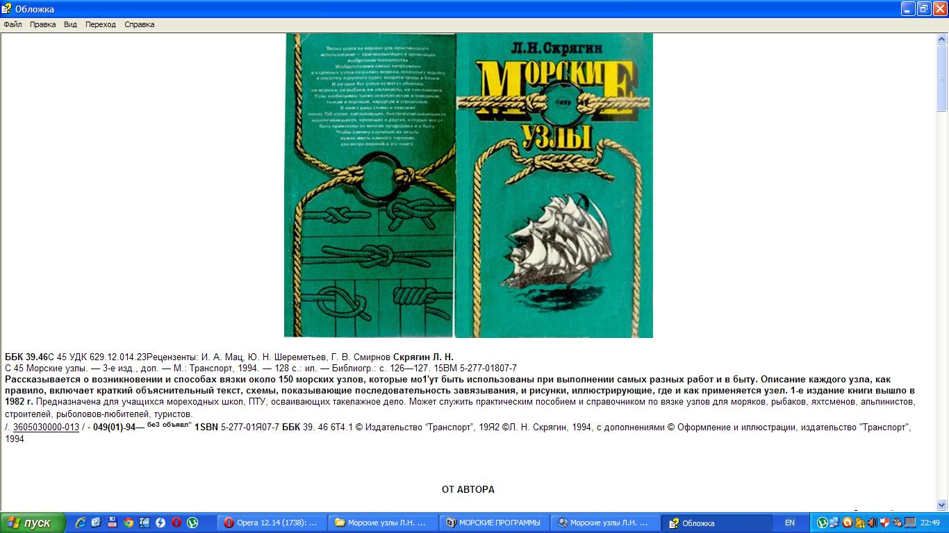 Описание: Подборка литературы по морским узлам на русском и английском языках - есть совсем детская, а есть и совсем серьезная.