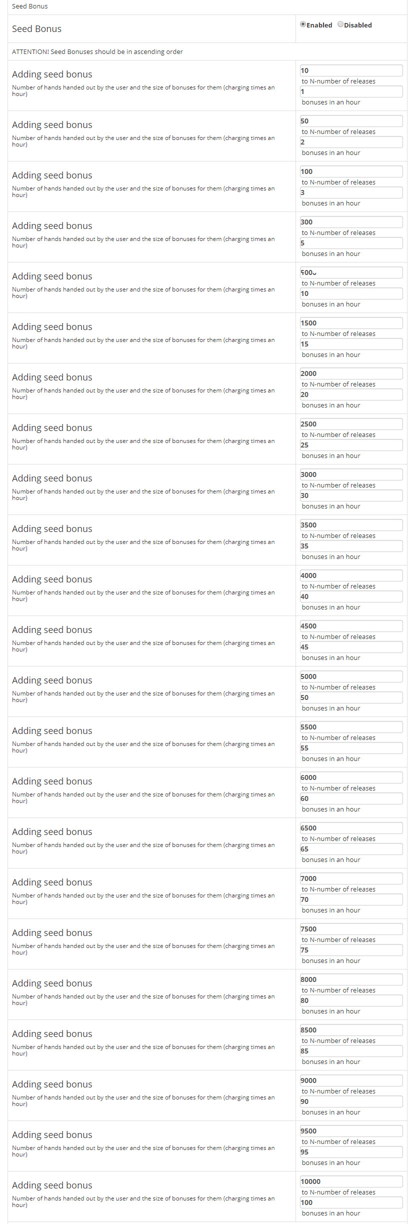 Система сид-бонус позволяет пользователям получать дополнительное количество аплоада к существующему за сидирование раздач на трекере.