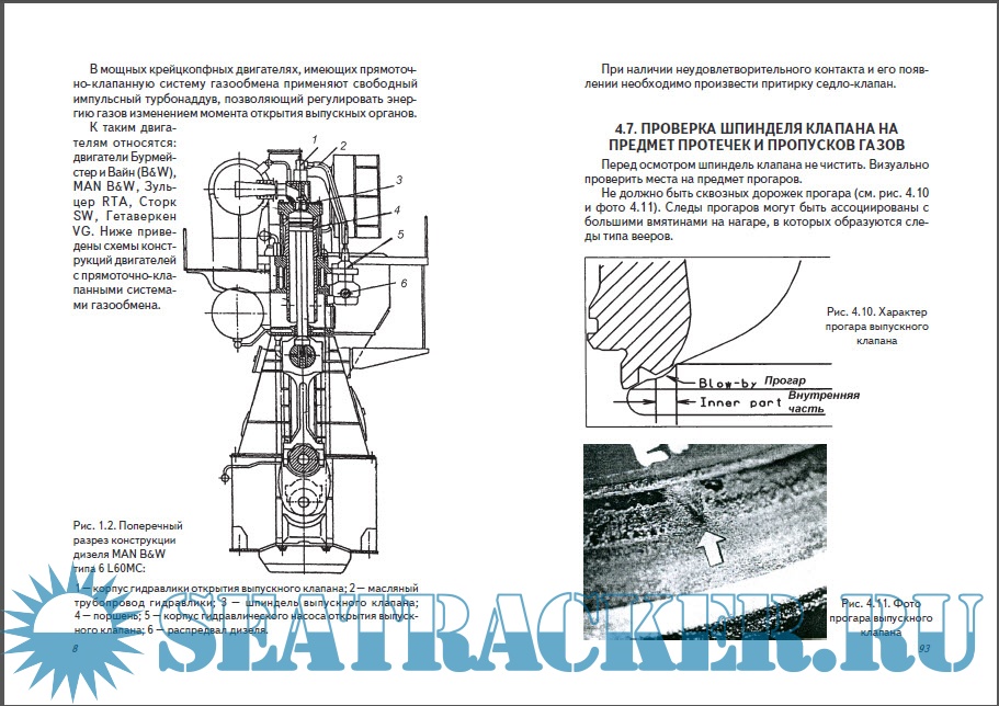 Описаны конструкции выпускных клапанов таких двигателей как В&W, MAN В&W, Зульцер RTA, условия их работы и управления, ревизия и ремонт.