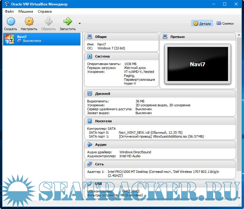 2. Создать виртуальную машину, выделив около 1.5 гб памяти озу, и желательно 32 мб видеопамяти. Внутри машины Windows 7 x32.