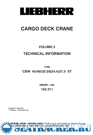 Liebherr Cargo deck crane CBW 40 / 29,5 ST (Instruction manual + Technical information) [2000, PDF]