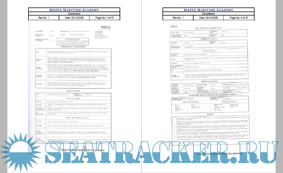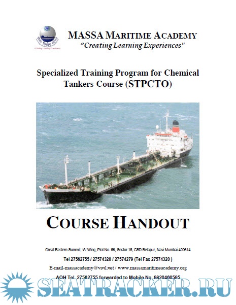 Year: 2005 Language: english Author: MASSA Maritime Academy Genre: Training courses Publisher: MASSA Maritime Academy Edition: - ISBN: - Format: PDF Quality: eBook Pages count: 180 Description: This course, called the Specialized Training Program for Chemical Tanker Operations Course is to intended to provides training for Masters, Chief engineers, Officers and any person with immediate responsibility for the loading, discharging and care in transit or handling of cargo. It comprises a specialised trainings programme appropriate to their duties, including chemical tanker safety, pollution prevention, operational practice and obligations under applicable laws and regulations. The course takes full account of section A-V/1 of the STCW Code adopted by the International Convention on Standards of Training, Certification and Watch keeping for Seafarers 1978, as amended in 1995. Objective: Provided they hold an appropriate certificate and are otherwise qualified in accordance with regulation V/1-2.2 of the International Convention on Standards of Training, Certification and Watch keeping for Seafarers 1978, as amended in 1995, those successfully completing the course should be able to take immediate responsibility for loading, discharging and care in transit or handling of cargo on chemical tankers. Course Duration: Ten days (72 hours) Course outline: Relevant extracts are enclosed. Entry Standards: This course is open to seafarers who have completed a shore based fire-fighting training course approved by the Administration and who have relevant experience appropriate to their duties on chemical tankers, as stipulated in VI/1 as stipulated in STCW regulation V/1, paragraph 2.1, and sub-paragraphs 1.1 or 1.2. Course Certificates: On successful completion of the course, a candidate will be issued a certificate, by the training institution, stating that the candidate has completed the course. 100 % attendance is required. Candidates unsuccessful in their internal assessment test, will be given the certificate of attendance only. Teaching Equipment: The course will be conducted using lectures and presentations. White boards, OHP projector, OHP sheets, VCP with TV, computer with LCD projector will be used in lecture as per requirement of the lecturer. Assessment: The Institute will carry out assessment test of the students after completion of this course. Assessment shall consist of written exam, both objective and descriptive. Criteria for passing: All candidates will be issued with a workbook through which candidates will be assessed continuously. At the end of the course they will be given final assessment and expected to answer all the questions, failing which he will be give additional instructions and will be reassessed before being issued with certificate of completion. Final assessment will be in the oral format.