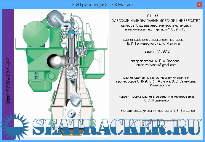 Описание: Программа позволяет выполнить расчёт рабочего цикла дизеля по методу В.И.Гриневецкого-Е.К.Мазинга