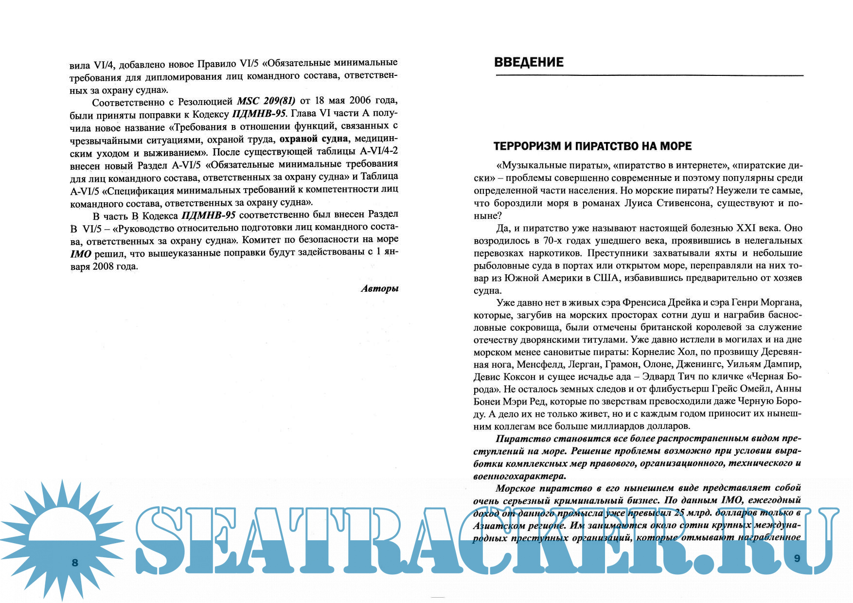 Настоящее учебное пособие подготовлено в соответствии с принятыми Дипломати¬ческой Конференцией (Лондон-IMO, 9-13 декабря 2002), рядом поправок в Международную Конвенцию СОЛАС 74, включающих обязательные требования, знание которых дает право на выдачу офицеру, прошедшему обучение на специальных курсах, диплома (сертификата) для выполнения функций, связанных с охраной судна. Спецификация минимальных стандартов профессиональных знаний, умений и навыков для офицера, ответственного за охрану судна, из¬ложена в Правиле VU5 - Конвенции ПДНМВ 78/95, а также в Конвенции СОЛАС 74 (Правиле XI -2/3) содержащей Международный кодекс по охране судов и портовых средств (МК ОСПС), «International Code for the security of ships and the port facilities» - (ISPS CODE).