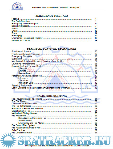 Description: First aid, personal survival and fire fighting training guide