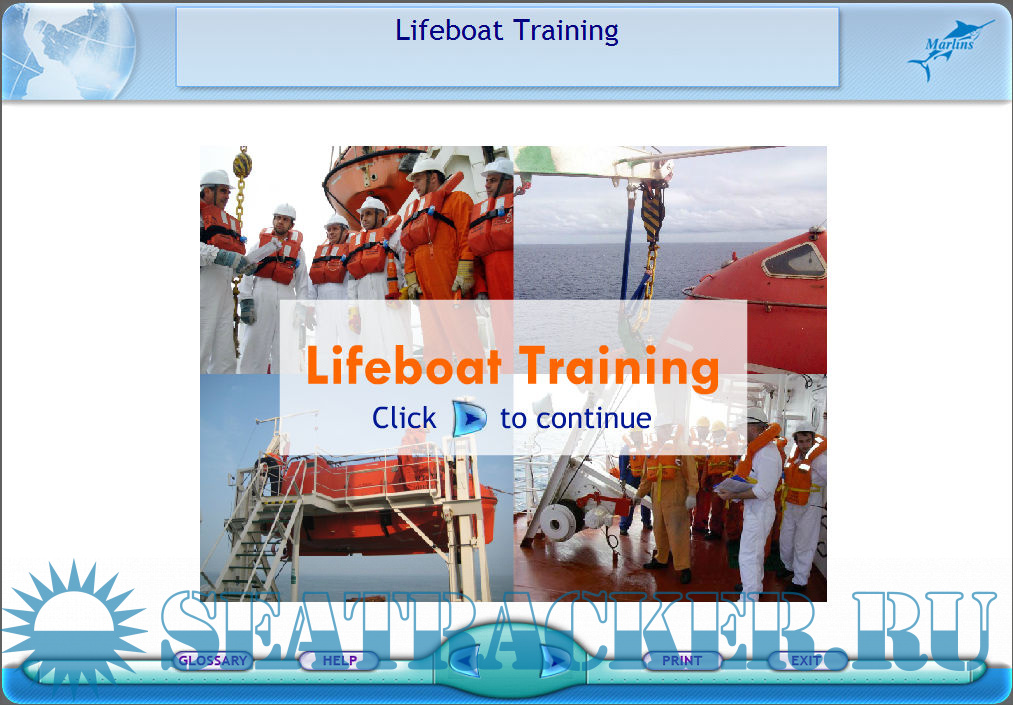Description: The overall declared objectives of this computer-based training course developed by Marlins are to provide necessary instruction, training and explanation about all aspects of lifeboat operation, maintenance and certification, to describe the construction and working principles of the major components of the typical lifeboat systems, to highlight the regulations and the requirements, to provide explanations of abandon ship drill and procedures, provide a means to reinforce familiarization of equipment on board the ship, to test senior officers and crew on their understanding of lifeboat arrangement, operations and inspection/maintenance. The course for Support level covers overview of lifeboat training, typical arrangement, operating procedure, lifeboat inspection and maintenance, relevant regulations and requirements, and common incidents. After study of the first section of this training course, you shall be able to understand the whole importance of having lifeboat training, identify where lifeboat training can be carried out, specify the intervals for having lifeboat training, list the knowledge and skills you can obtain from lifeboat training, and describe how this computer-based training can enhance lifeboat training. The exercisel are presented in the form of a questionnaire.
