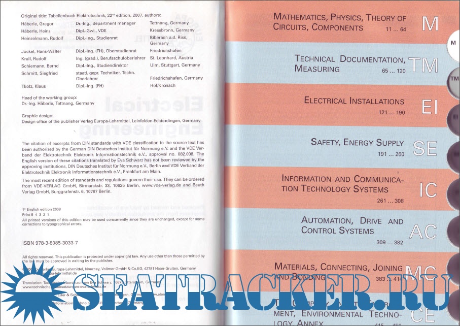 • Section CE: the company and its environment, environmental technology, annex Organizational structures of companies, teamwork, job planning, cost accounting and key numbers. Projects, skills of electrical specialists, realisation of projects. Environmental terms, hazardous materials, handling of electronic waste products. Standards, subject index, internet addresses. The publisher and authors would be grateful for any suggestions and constructive comments.