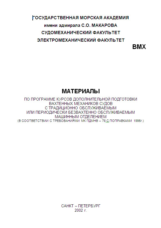 Описание: Материалы по программе курсов дополнительной подготовки вахтенных механиков судов