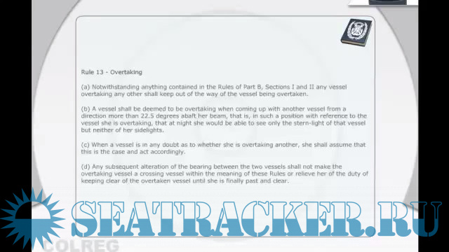 Year: 2016 Language: english Genre: Learning Video Playtime: 24:19 Quality: CamRip Format: MP4 Video: 640x360 / 116 kbps / 16:9 Audio: 96 kbps / 44.1 KHz Description: The learning objectives of the video are: The rule of the road when two vessels are meeting each other and the responsibility between these vessels in clear visibility and also in restricted visibility. Overtaking Rule 13 Head-on situation Rule 14 Crossing situation Rule 15 Actions by give-way and Stand on Vessel Rules 16 & 17 Responsibilities between Vessels Conduct of vessels in restricted visibility Distress Signals - Annex IV