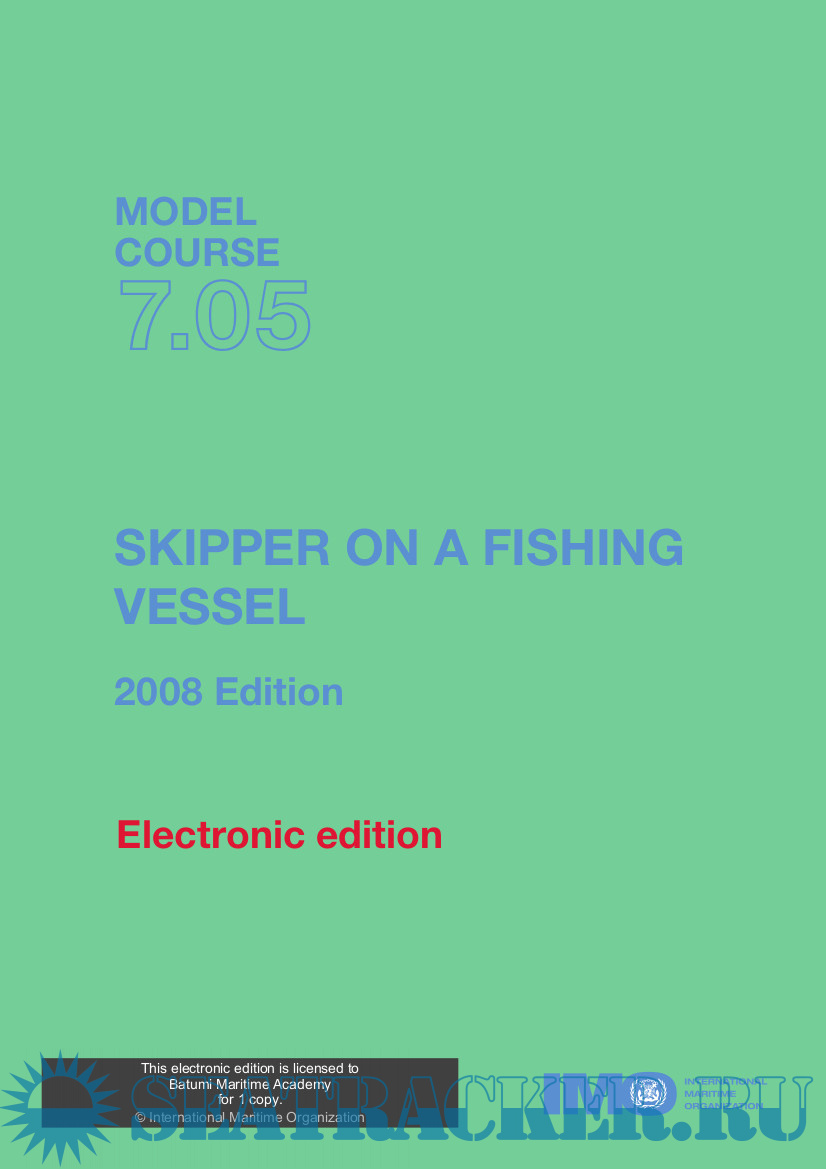Year: 2008 Language: english Author: IMO Publisher: IMO Edition: 2008 ISBN: 978-92-801-00402 Format: PDF Quality: eBook Pages count: 277 Description: The standards of competence that have to be met by fishing vessel personnel are defined in the International Convention on Standards of Training, Certification and Watchkeeping for Fishing Vessel Personnel, 1995 (STCW-F). It sets out the education and training requirements for achieving those standards. Specifically, this course covers the minimum standard of competence for skippers on fishing vessels of 24 metres in length and over, operating in unlimited waters.