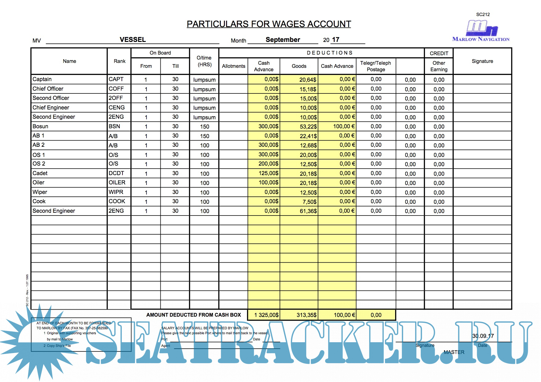 Year: 2017 Version: 1.0 Developer: Капитан Platform: Windows System Requirements: Microsoft Office любой версии Localization: english Crack: Not needed Description: Программа для расчета Bonded Stores. Месячные отчеты в Marlow Navigation и судовладельцу