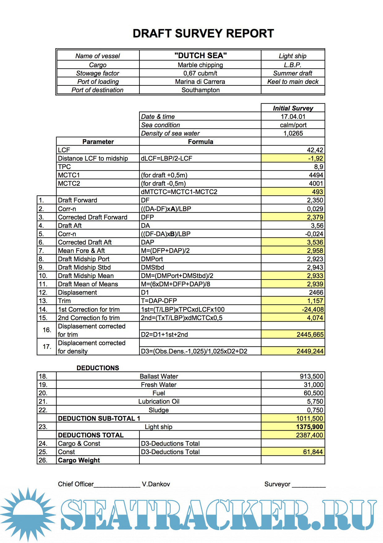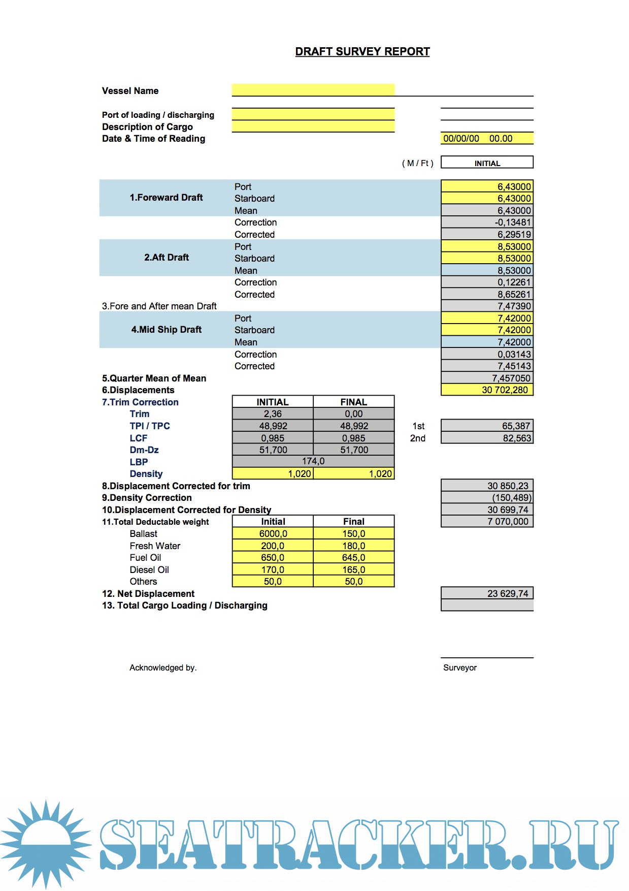 Excel программы для расчета Draft Survey