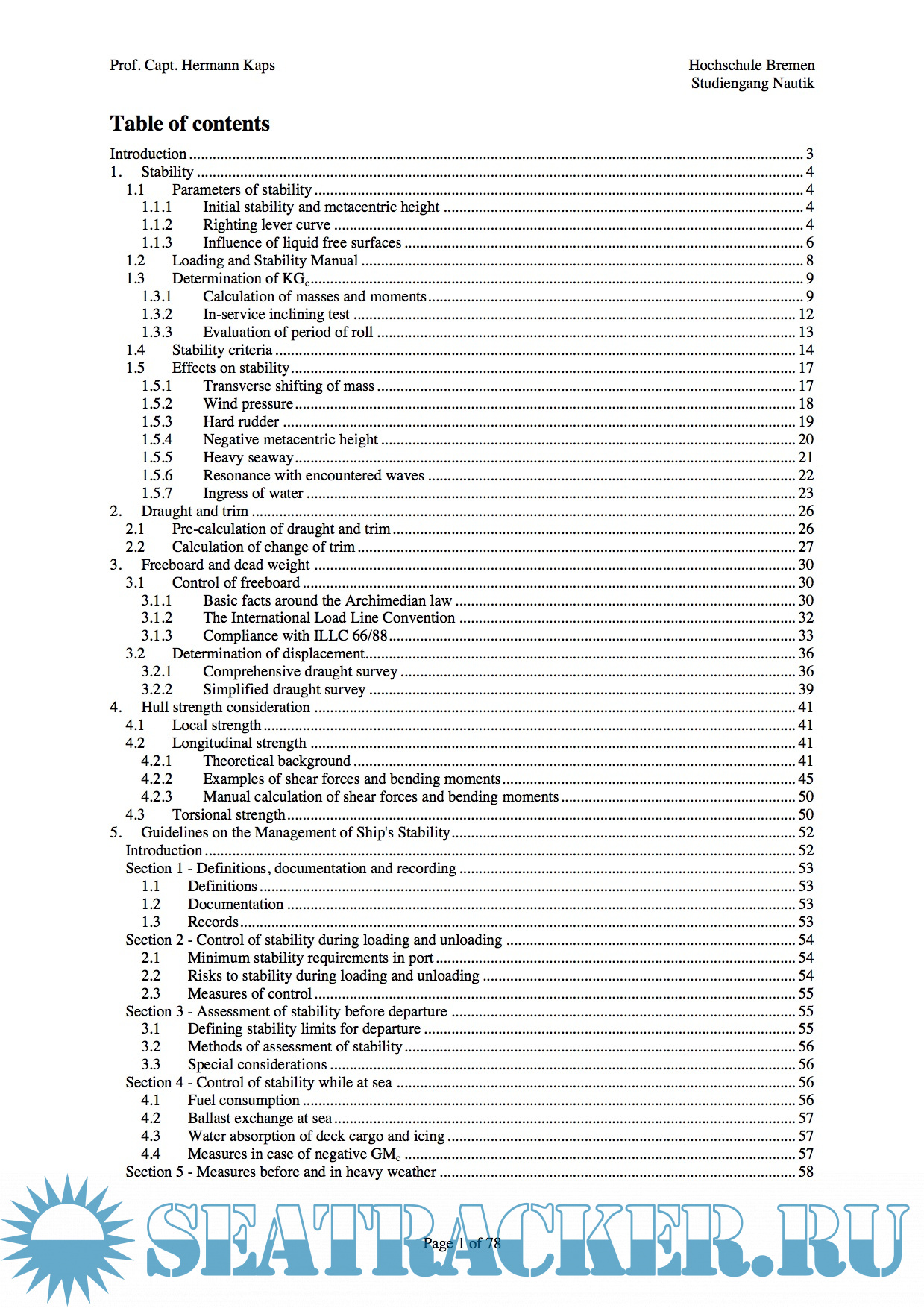 Description: This booklet provides the basic outline of lectures on stability, load-line, trim and longitudinal strength in accordance with the requirements of Chapter II of the STCW-Code, in particular with the tables A-II/1 and A-II/2 in this Code.
