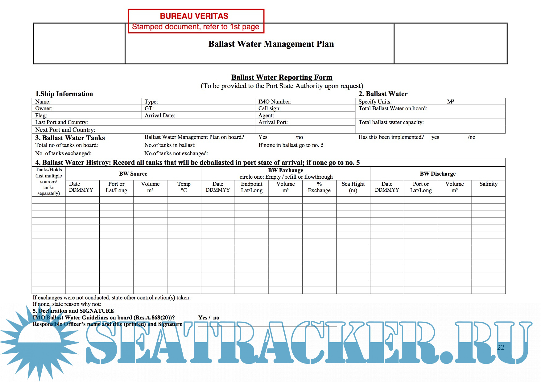 Ballast Water Management Plan DNV template - DNV [2017, PDF]