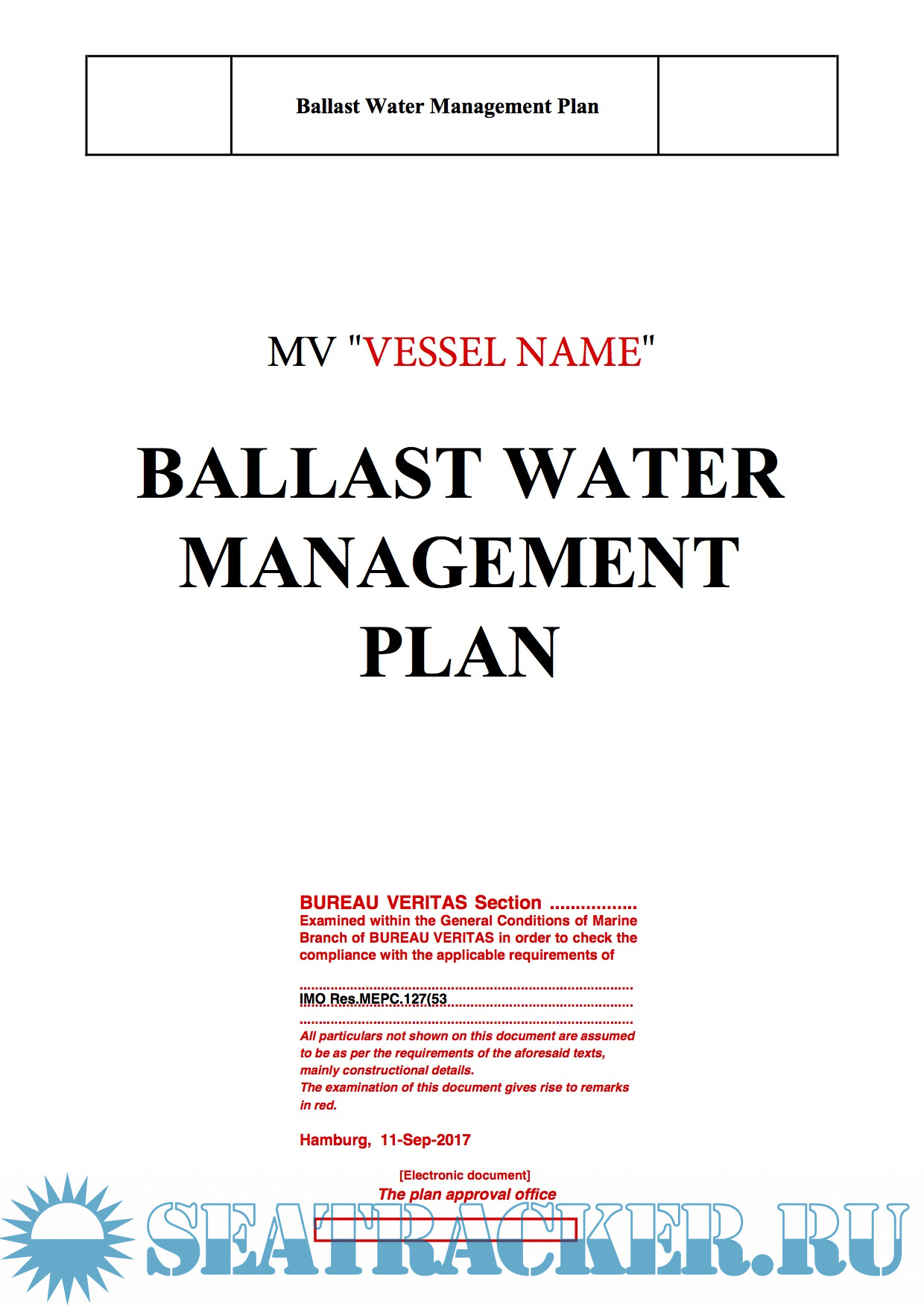 Description: Ballast Water Management Plan 2017 (original new working example) as per new regulations from 08.09.2017