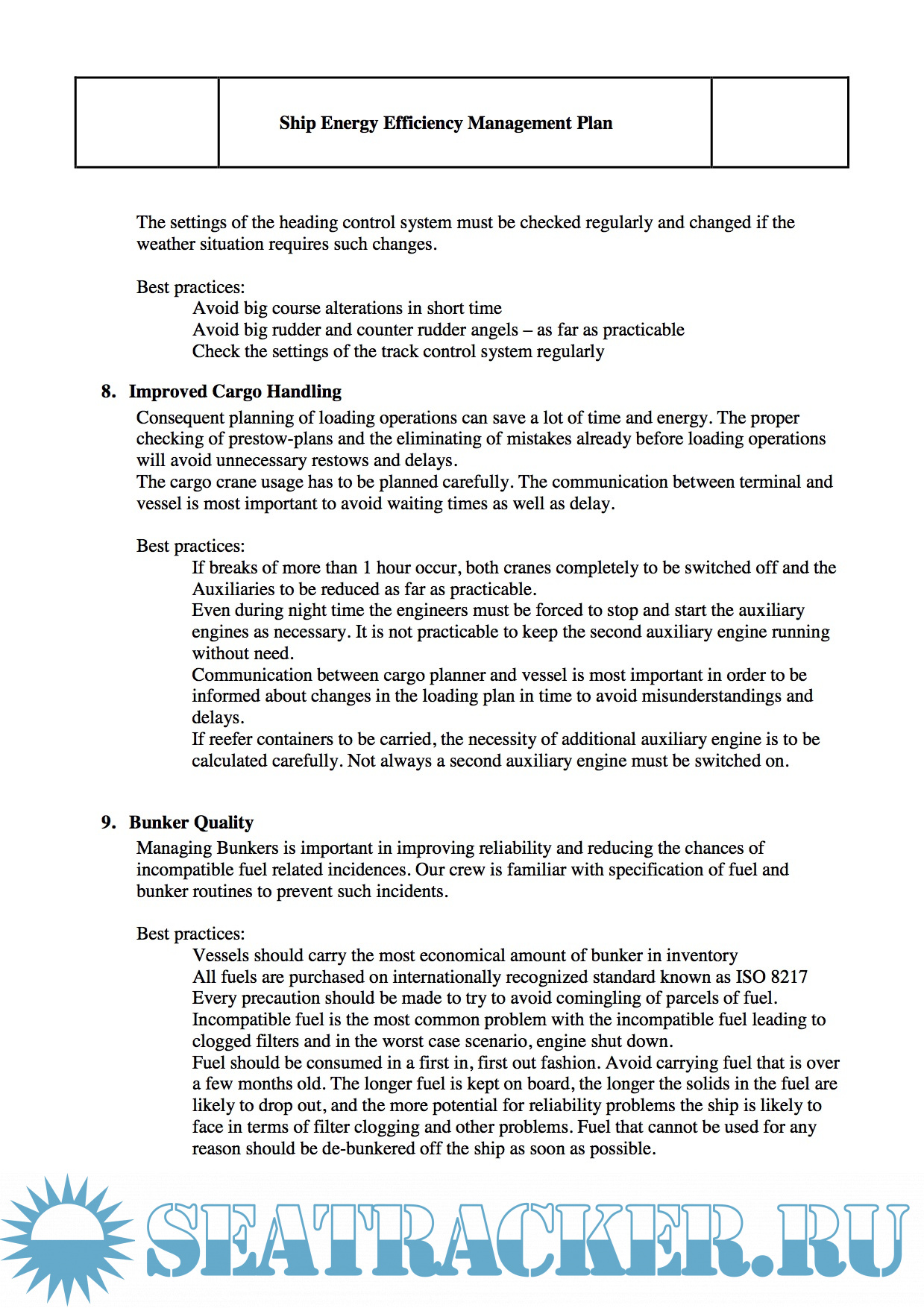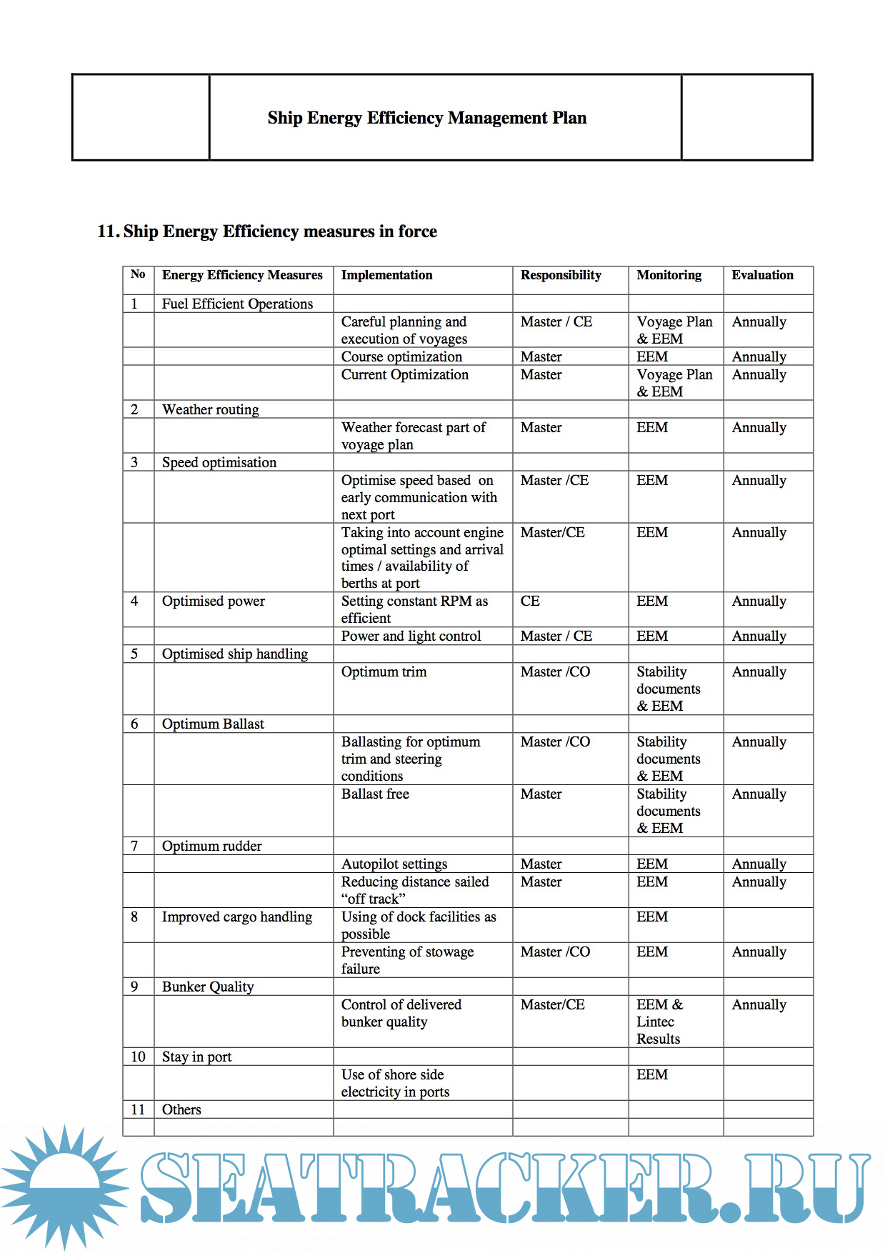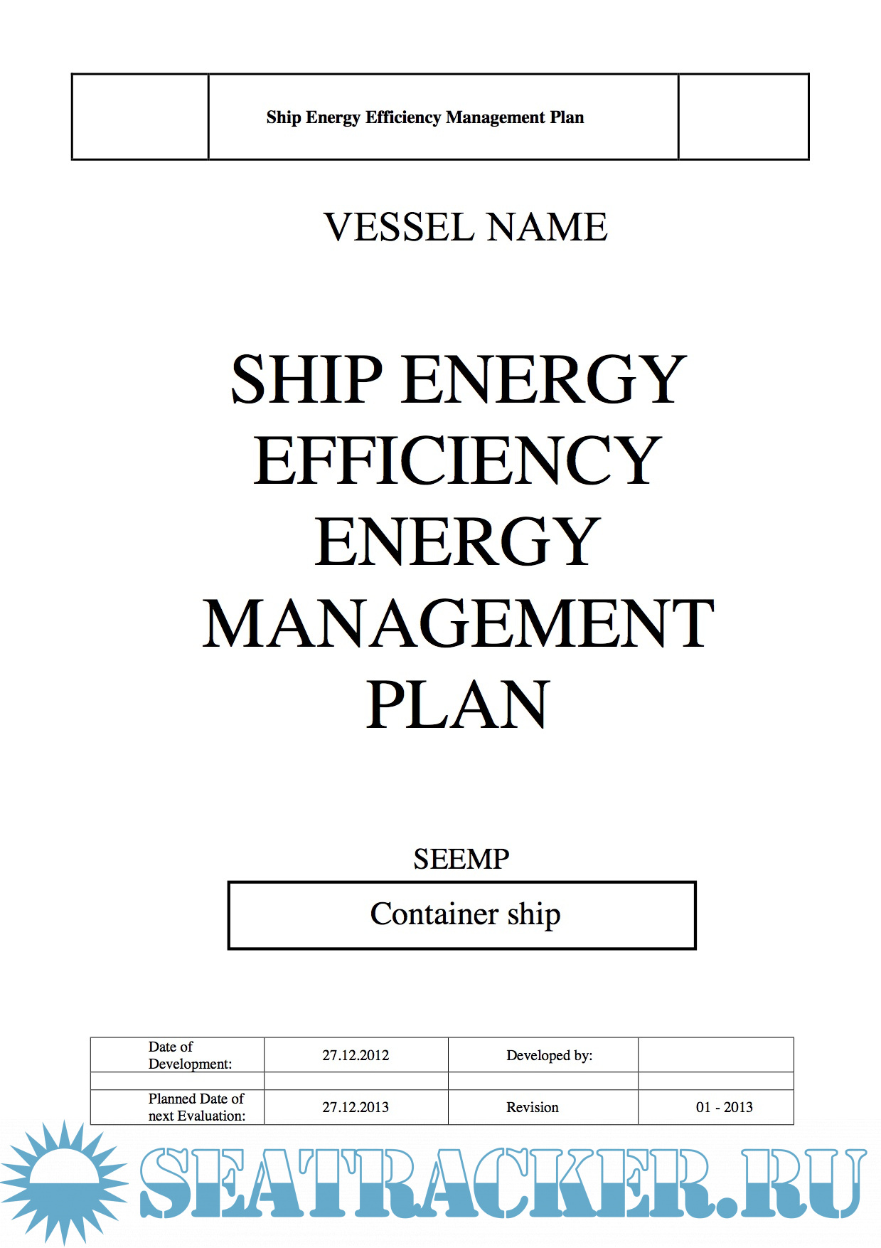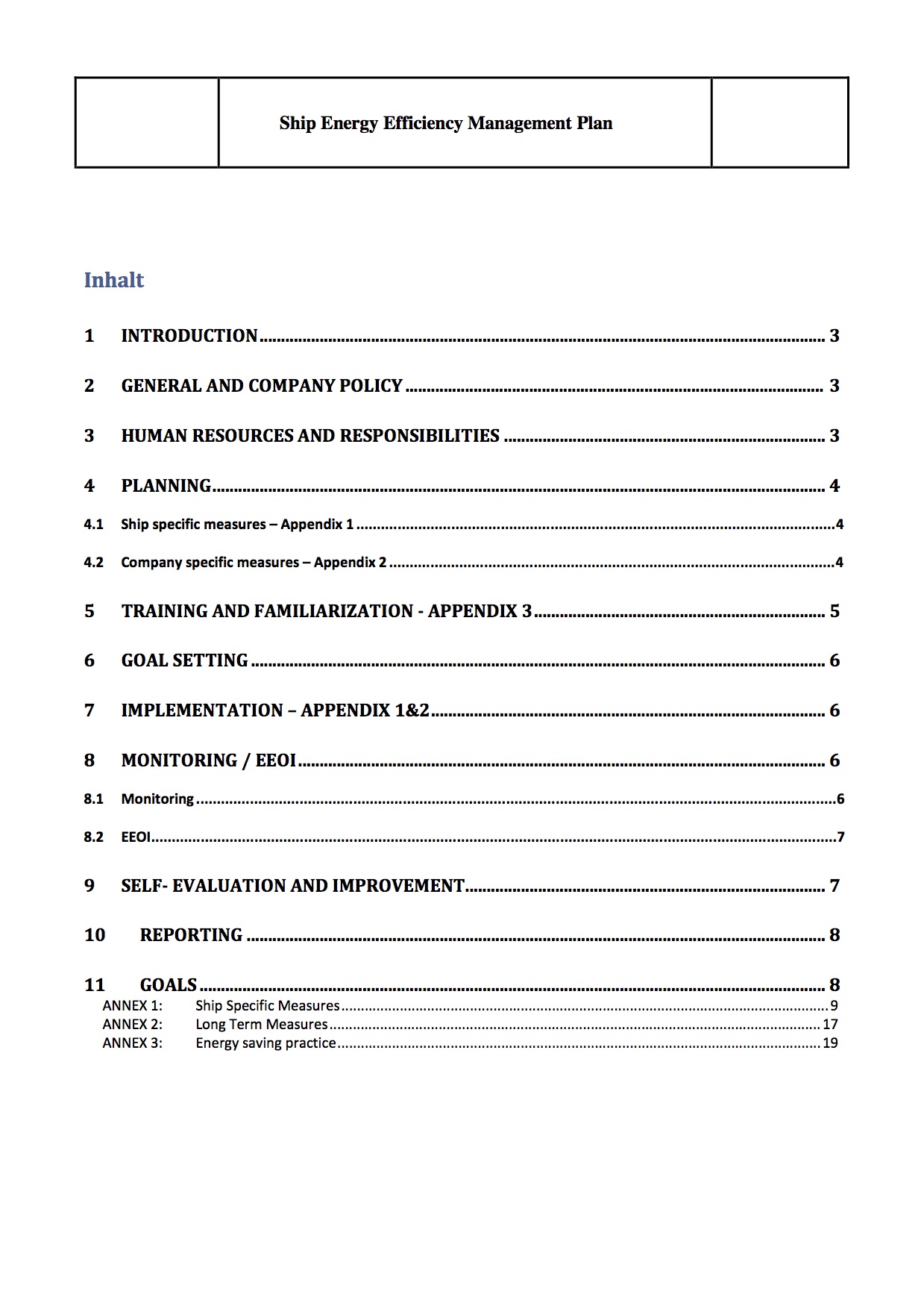 Shipboard Energy Efficiency Management Plan (SEEMP) (original working example)