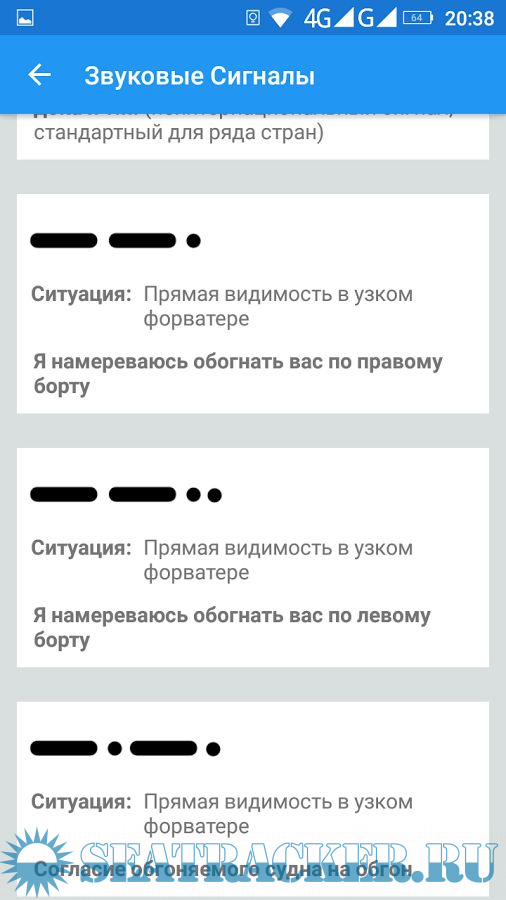 - Звуковые сигналы в условиях прямой и ограниченной видимости. Информация соответствует стандарту МППСС-72 (COLREGS-72), включая корректуру по состоянию на 2015 год.