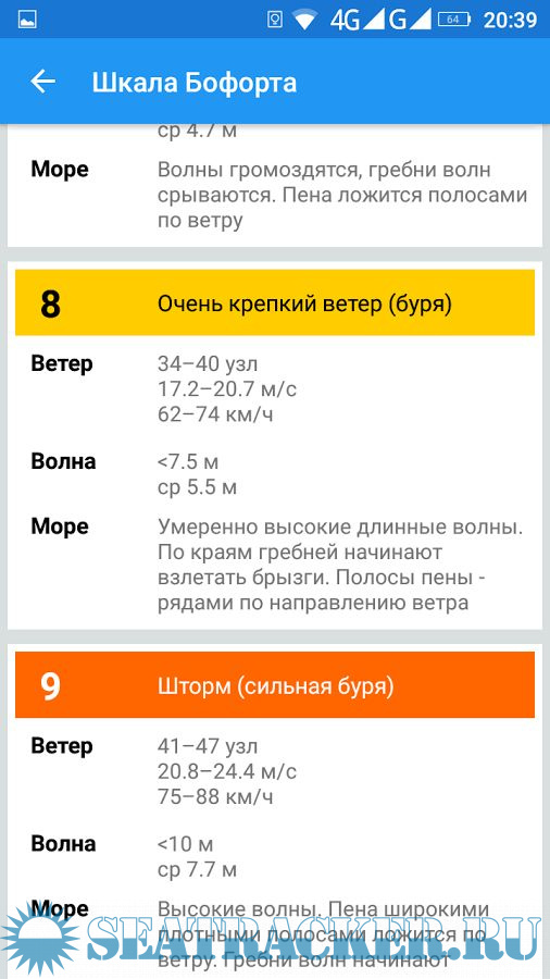- Шкалу Бофорта европейского 12-балльного стандарта ВМО ООН (OMM/WMO).