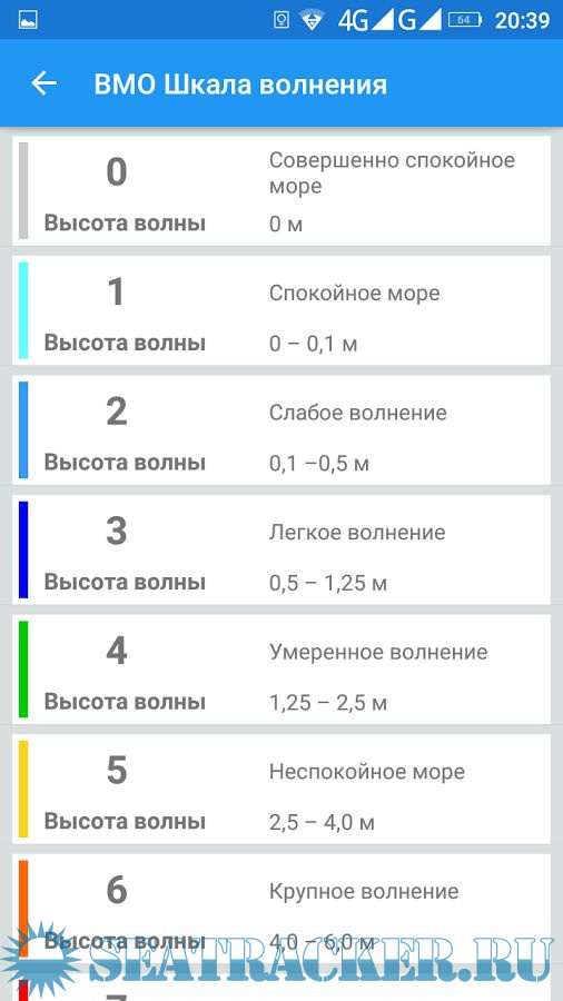 - Шкалу морского волнения 9-балльного стандарта ВМО ООН (OMM/WMO) - адаптированную шкалу Дугласа.