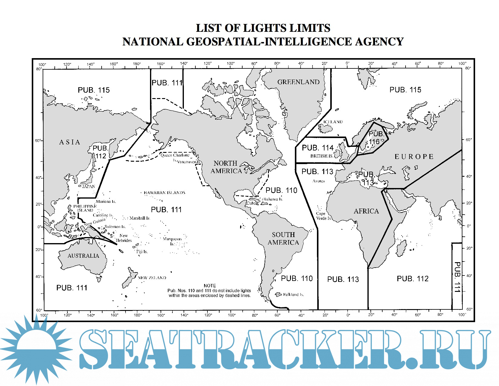 NGA List of Lights, Radio Aids and Fog Signals (Pub. 110 - 116)