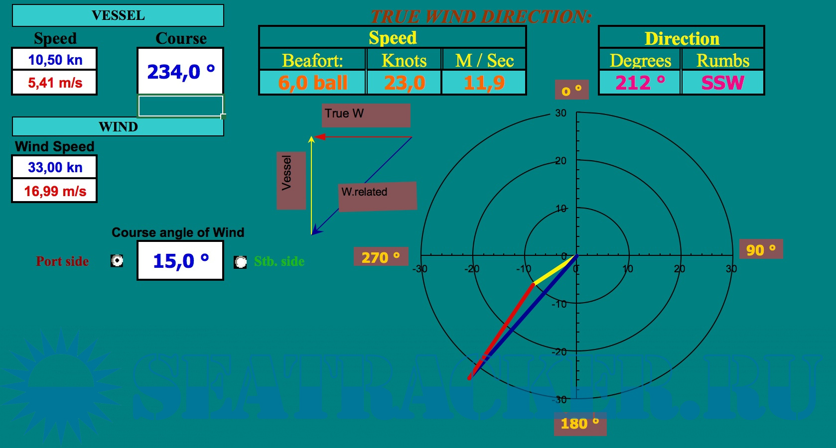 EXCEL True Wind Calculation / Расчет истинного ветра в Excel