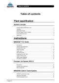 System Concept Technical data & Performance curve..............................................................................1 Drawings....................................................................................................................2 Steam Water System....................................................................................................3 Fuel Oil Supply Pressure Jet Burner...............................................................................4 Control System drawing...............................................................................................5 Spare Parts..................................................................................................................6 Instructions MISSION™ OC Boiler Descriptions................................................................................................................7 Operation and maintenance...........................................................................................8 Feed and boiler water...................................................................................................9 Water level gauge......................................................................................................10 Safety valves.............................................................................................................11 Feed water system......................................................................................................12 Regulating feed water valve........................................................................................13 Chemical dosing pump...............................................................................................14 Salinity alarm equipment............................................................................................15 Oil detection equipment..............................................................................................16 Pressure Jet Burner, KBO-E Descriptions..............................................................................................................17 Operation and maintenance.........................................................................................18 Fuel oil pump unit......................................................................................................19 MISSION Control Touch System MISSION control touch system...................................................................................20 Operation of the panels...............................................................................................21 Commisioning and service..........................................................................................22 TABLE OF CONTENTS Burner sequence diagram............................................................................................23 Flame safeguard.........................................................................................................24 Menu structure for panels............................................................................................25