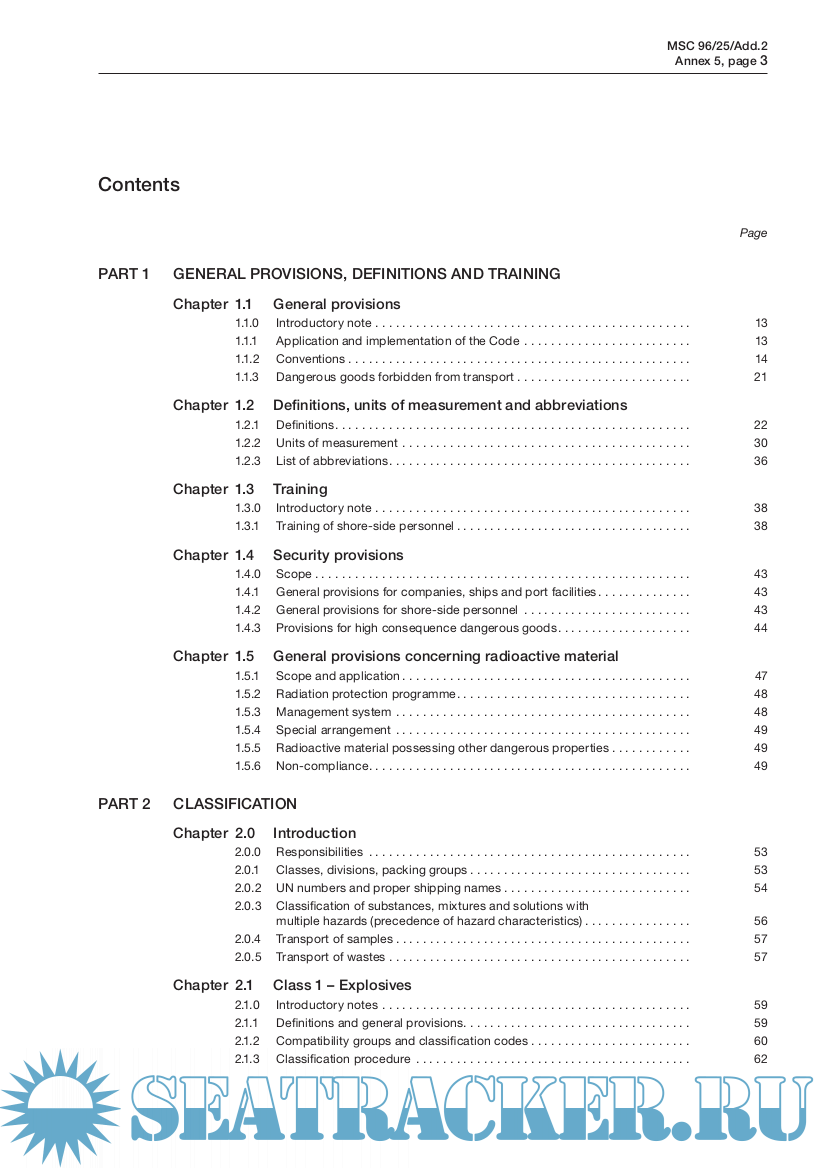 The Code lays down basic principles: detailed recommendations for individual substances, materials and articles, and a number of recommendations for good operational practice, including advice on terminology, packing, labelling, stowage, segregation and handling, and emergency response action.