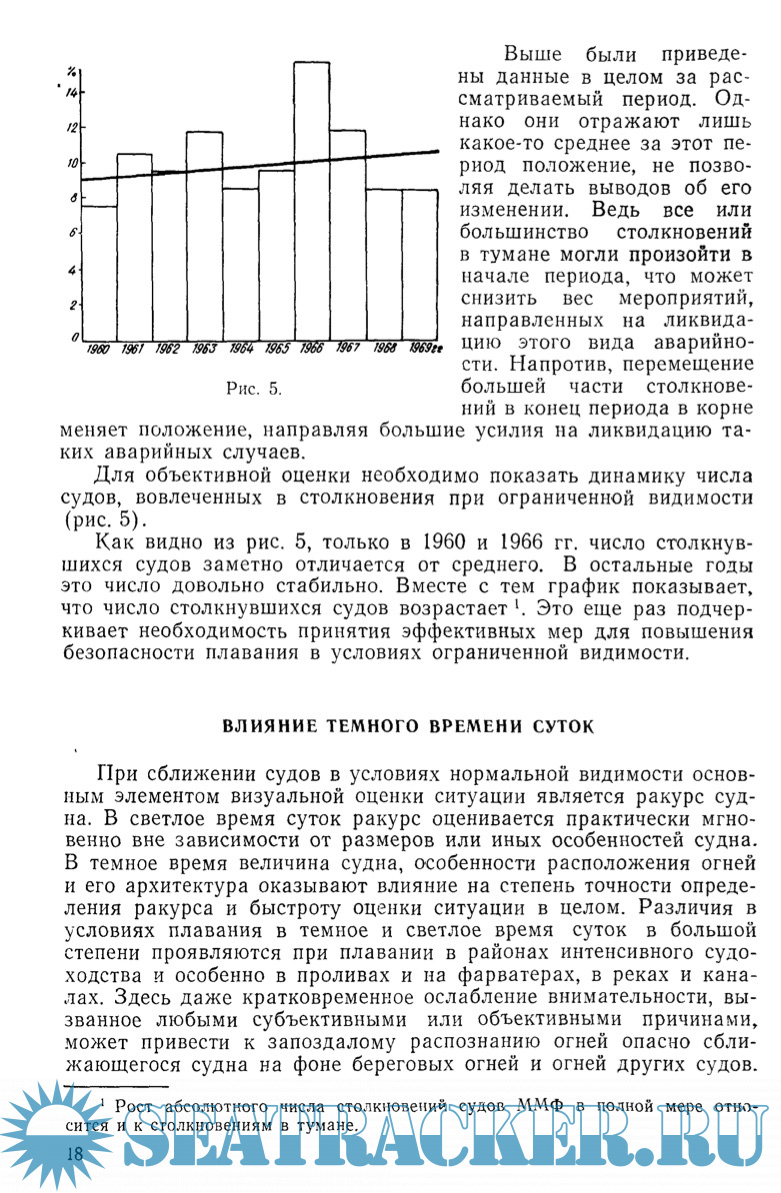 Описание: В книге даны результаты анализа столкновений судов, происшедших за десятилетний период; показано, как зависит частота указанных аварий и тяжесть их последствий от таких факторов, как район плавания, условия видимости, время суток, момент происшествия, тоннаж, скорость, вид силовой установки судна и др.; подробно рассмотрены наиболее характерные ошибки и нарушения судоводителей, вскрыты субъективные и объективные причины, даны обоснованные рекомендации для их устранения.