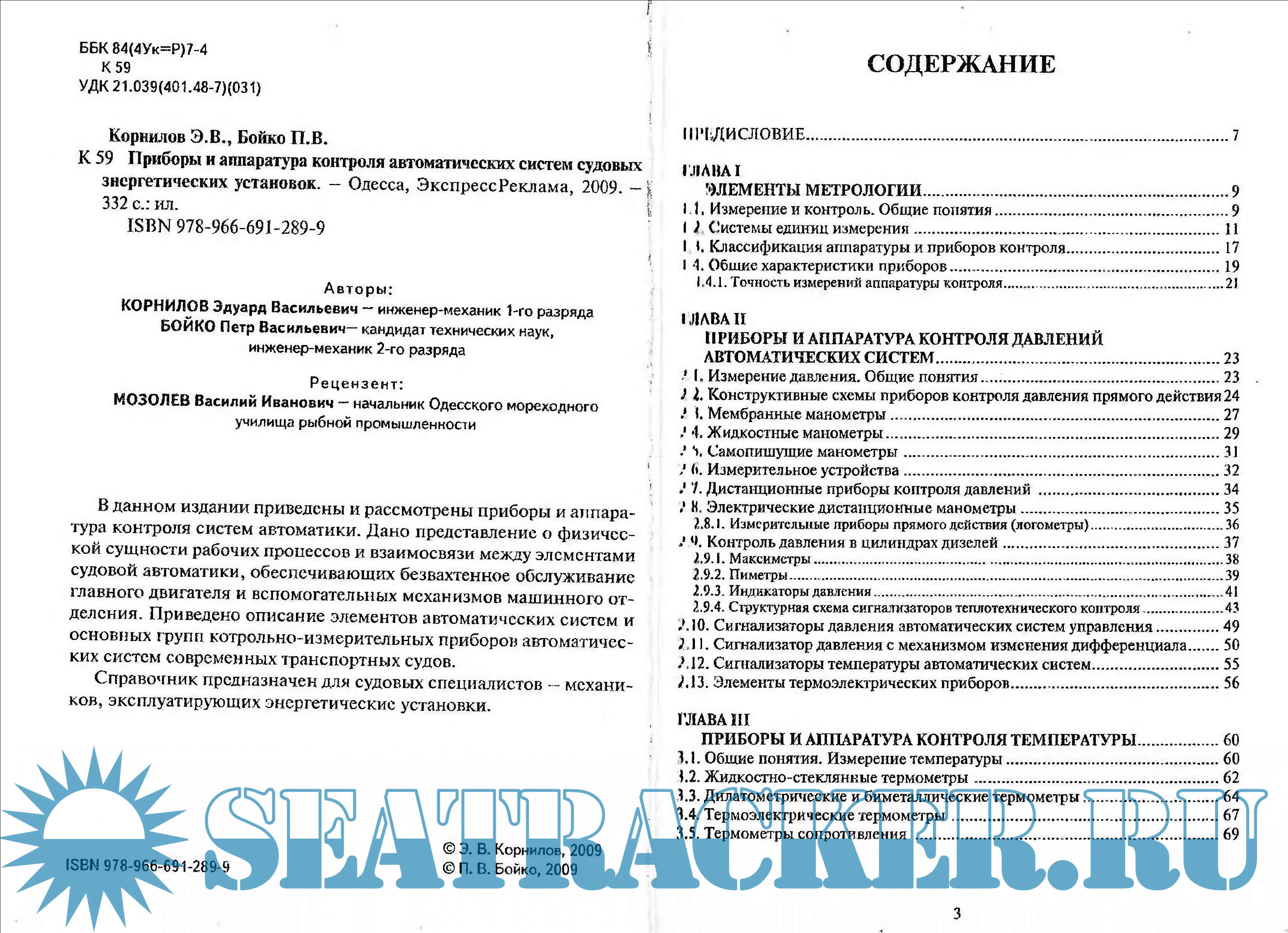 Описание: Справочник предназначен для судовых специалистов-механиков, эксплуатирующих энергетические установки. Приведены и рассмотрены приборы и аппаратура контроля систем автоматики.Дано представление о сущности рабочих процессов и взаимосвязи между элементами судовой автоматики, обеспечивающих безвахтенное обслуживание судовых двигателей и вспомогательных механизмов машинного отделения. Приведено описание элементов автоматических систем и основных групп контрольно-измерительных приборов автоматических систем современных транспортных судов.