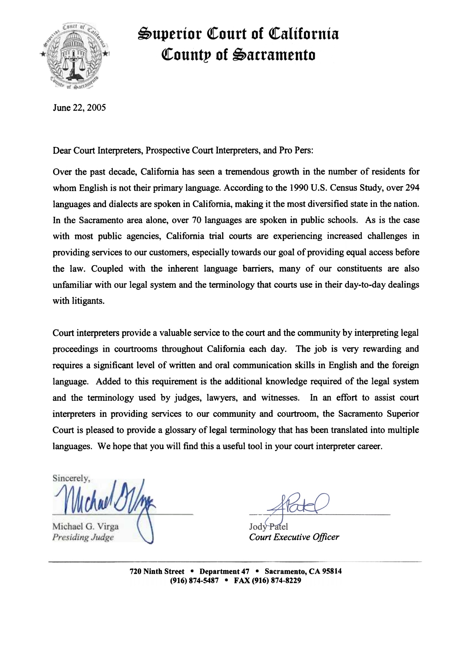 The Superior Court of California, County of Sacramento has prepared this