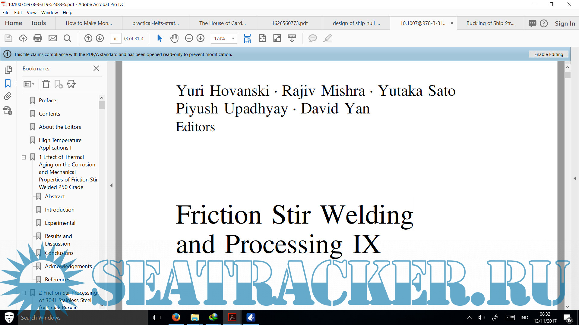 Year: 2017 Language: english Author: Yuri Hovanski Genre: Textbook Publisher: Springer Edition: 1st ISBN: 978-3319523828 Format: PDF Quality: OCR without errors Pages count: 315 Description: This books presents a current look at friction stir welding technology from application to characterization and from modeling to R&D. It is a compilation of the recent progress relating to friction stir technologies including derivative technologies, high-temperature applications, industrial applications, dissimilar alloy/materials, lightweight alloys, simulation, and characterization. With contributions from leaders and experts in industry and academia, this will be a comprehensive source for the field of Friction Stir Welding and Processing.