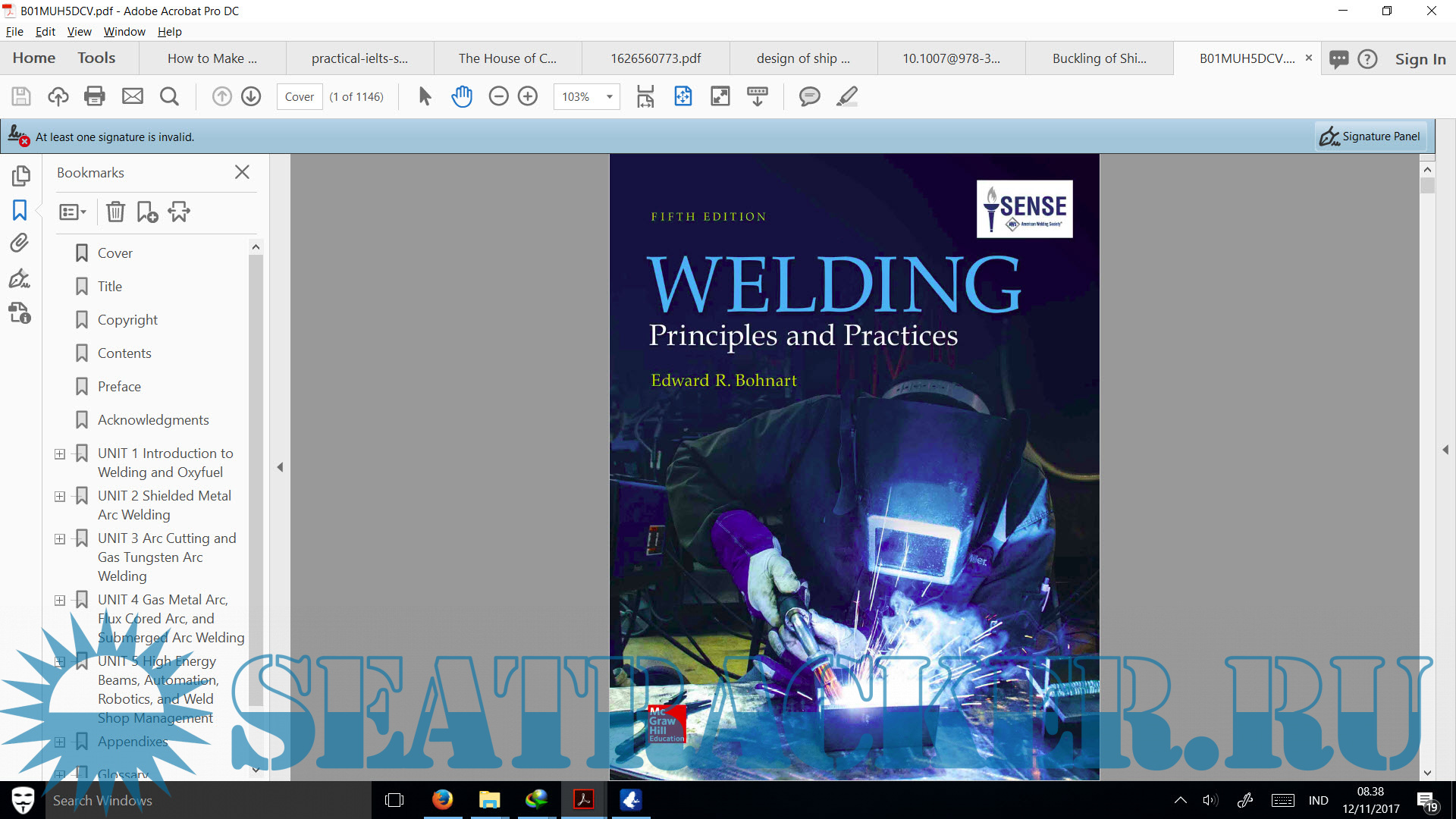 Year: 2017 Language: english Author: Edward R. Bohnart Genre: Handbook Publisher: 2017 Edition: 5th ISBN: 978-0073373867 Format: PDF Quality: OCR with errors Pages count: 1146 Description: Welding: Principles and Practices provides a course of instruction in welding, other joining processes, and cutting that will enable students to begin with the most elementary work and progressively study and practice each process until they are skilled. Both principles and practice are presented so that the student can combine the “why” and the “how” for complete understanding. In this textbook, the fundamental theory of the practice in gas, arc, gas-shielded and self shielded processes, welding, brazing, soldering, and plastic welding processes, is presented. The various applications of these processes are covered such as manual, semiautomatic, mechanized, automatic, and robotic methods. Current industrial practices are cited with use of various national welding codes and standards. The content is based on the SENSE program of the American Welding Society along with other leading welding authorities.