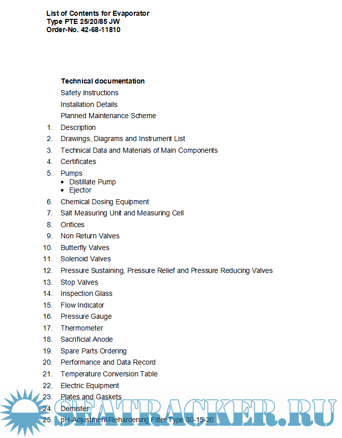 Description: Serck Fresh Water Generator Type PTE25-20-85 Technical Documentation, customer GEA-Westfalia Separator Mineraloil Systems GmbH