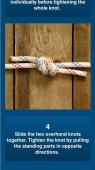 All the knots in this app are awarded a five-part knot score, with their strength, security, ease of tying, ease of untying, and usefulness given a grade from 1–5.