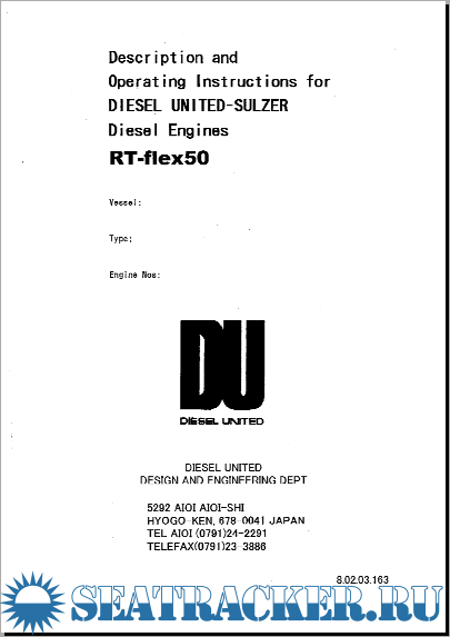 Description: Оригинальная инструкция с описанием технических характеристик, ТО, сборки / разборке всех узлов дизеля RT-flex 50, компании Diesel United, Japan.