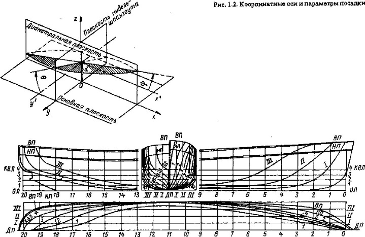 Следы взаимного пересечения базовых плоскостей образуют жестко связанную с судном систему прямоугольных координат