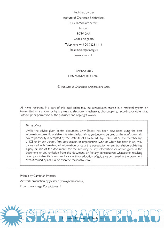 Year: 2015 Language: english Author: Robert Woods, CBE Chairman, P&O Ferries and Former President of the Institute of Chartered Shipbrokers Genre: Technical book Publisher: Institute of Chartered Shipbrokers Edition: First Edition ISBN: 978-1-908833-60-0 Format: PDF Quality: OCR with errors Pages count: 386 Description: Container ships have largely taken over the tasks of carrying goods to market internationally. In previous decades, these trades had been undertaken by numerous small tweendeckers. Large container ships have satisfied the promoters of economies of scale. Liner Trades covers the types of vessels operating liner services and their trade routes, and provides a comprehensive description of modern container ship operations and management. Co-operative ventures and consortia within the various service networks are detailed as are the financial and legal aspects of the trades and various types of documentation involved. This book is aimed not only at the students who wish to work in this sector, but also at those who wish to increase their knowledge of all aspects of the shipping business.