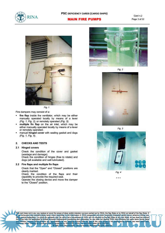 01 FIRE DAMPERS (ENGINE ROOM)02 MAIN FIRE PUMPS