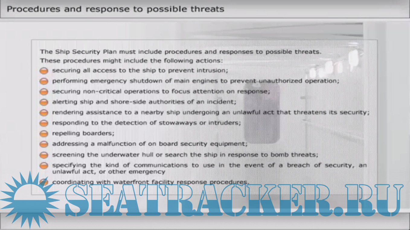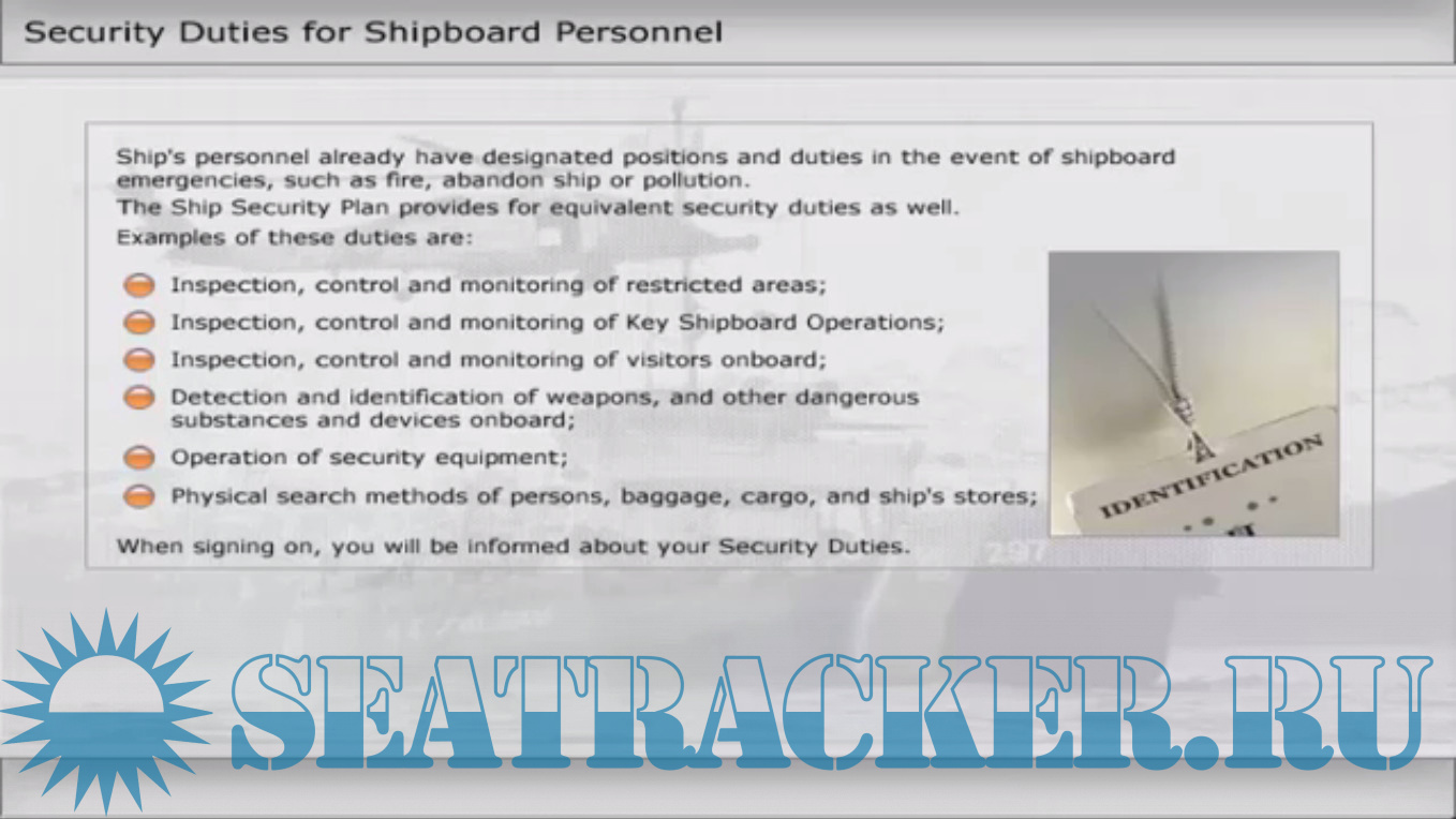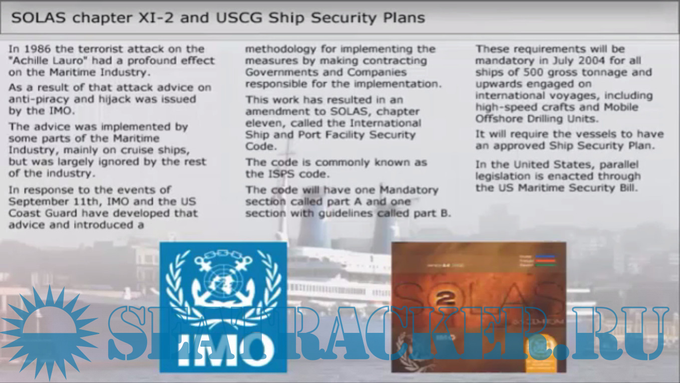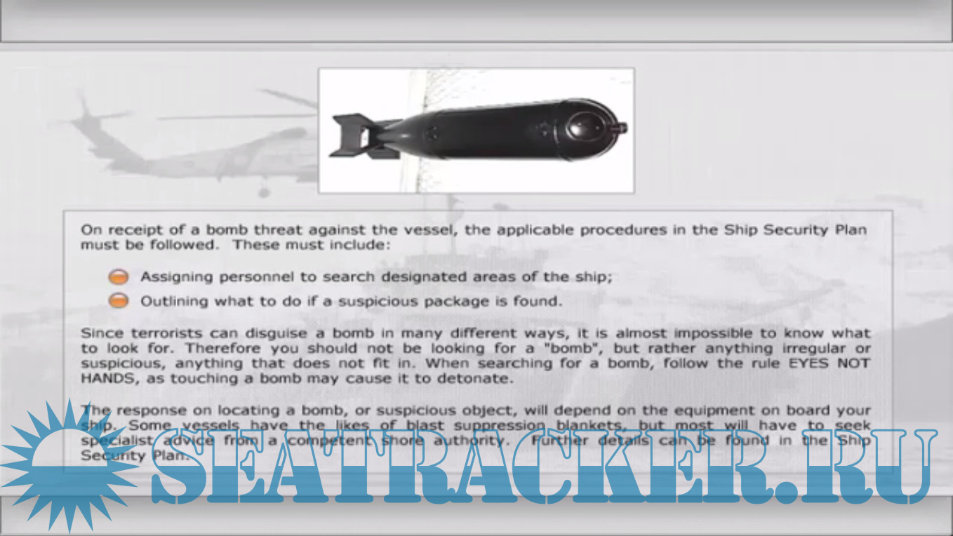 Year: 2018 Language: english Playtime: 31:12 Quality: WEB-DL Format: MP4 Video: 640x360 / 157 kbps / 16:9 Audio: 96 kbps / 44.1 KHz Description: There are 5 training video lessons in this batch: ISPS Code Regulations Ship Security Plans What are the Duties of Ship, Company, and Port Officer Training and Drills Required by the Ship Security Plan Ship Security Measures and Ship Security Levels After successfully completing this video lessons, you : - will be familiar with ISPS Code Ch 11-2, and associated Regulations. - will be familiar with Ship Security Plans - will be familiar with the duties of: • Company Security Officer Responsibilities(CSO) • Ship Security Officer Responsibilities(SSO) • Port Facility Security Officer Responsibilities(PFSO) - will be familiar with the Training and drills required by the Ship Security Plan. - will know what security measures to take at the different Security levels.