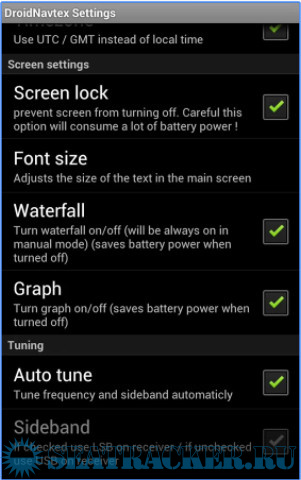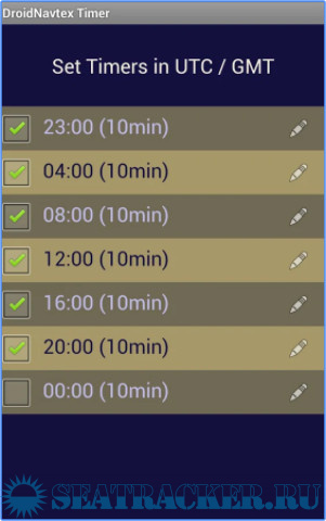 To save battery power 7 timers can be set to start DroidNavtex at a given time to decode messages. All timers can be set in local time or UTC.