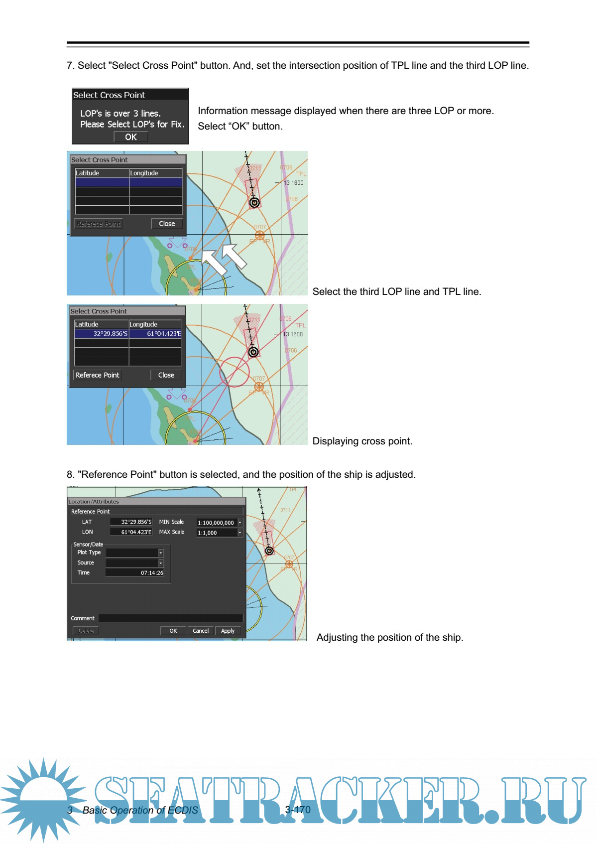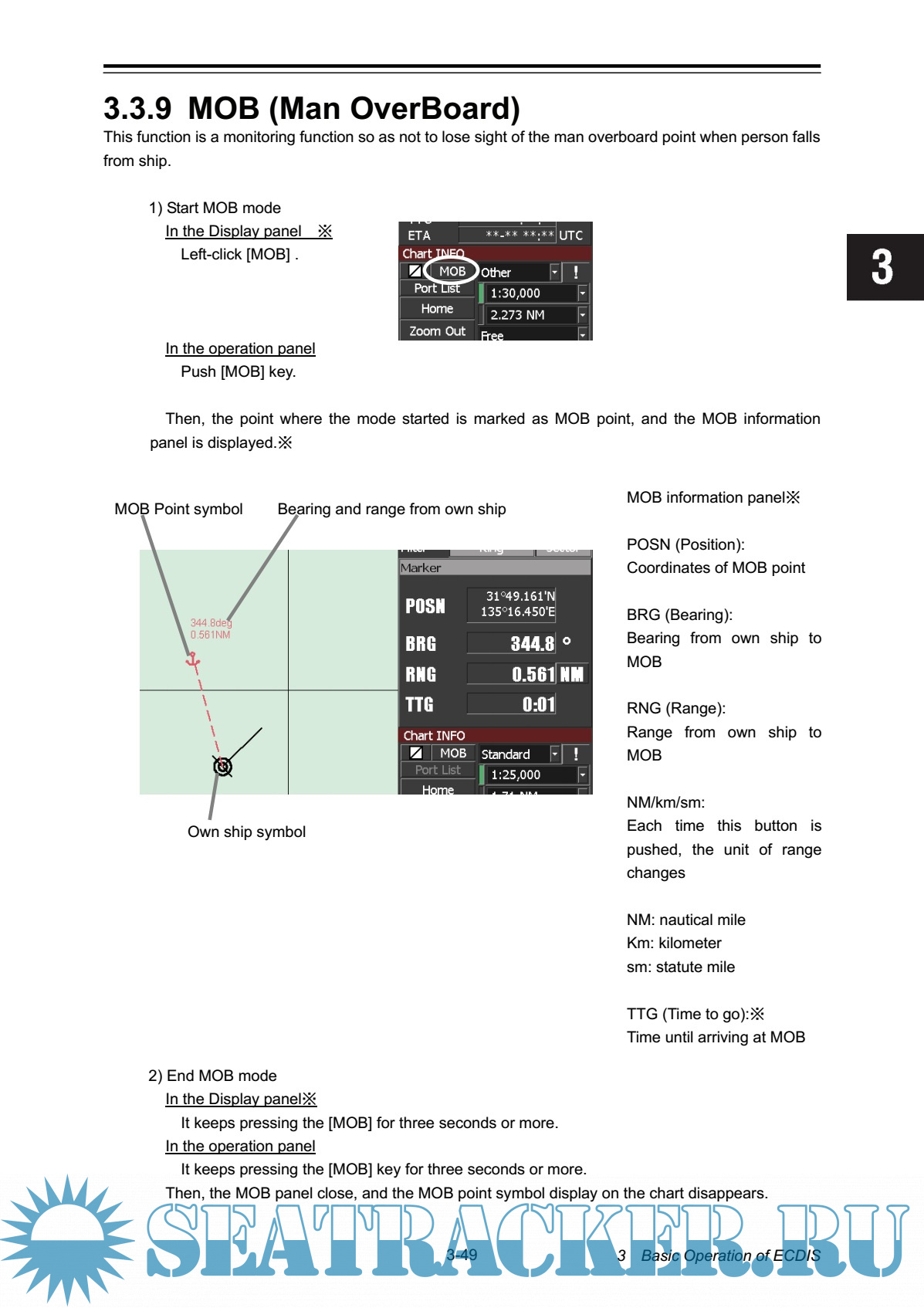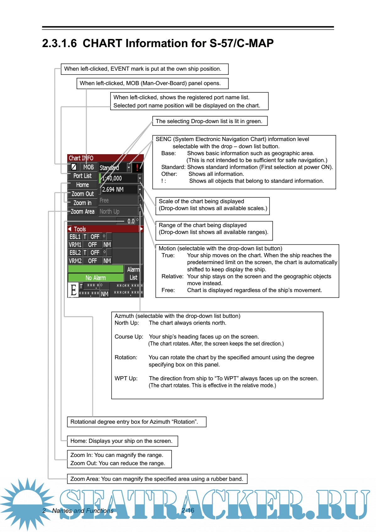 • Display of information such as the date/time, current position, heading, and ship’s speed