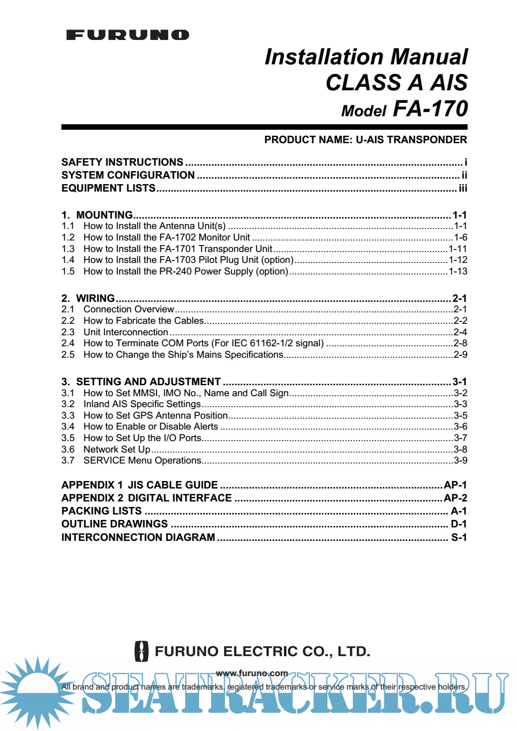 New edition: Furuno Class A AIS FA-170 Installation Manual - Furuno [2019, PDF]