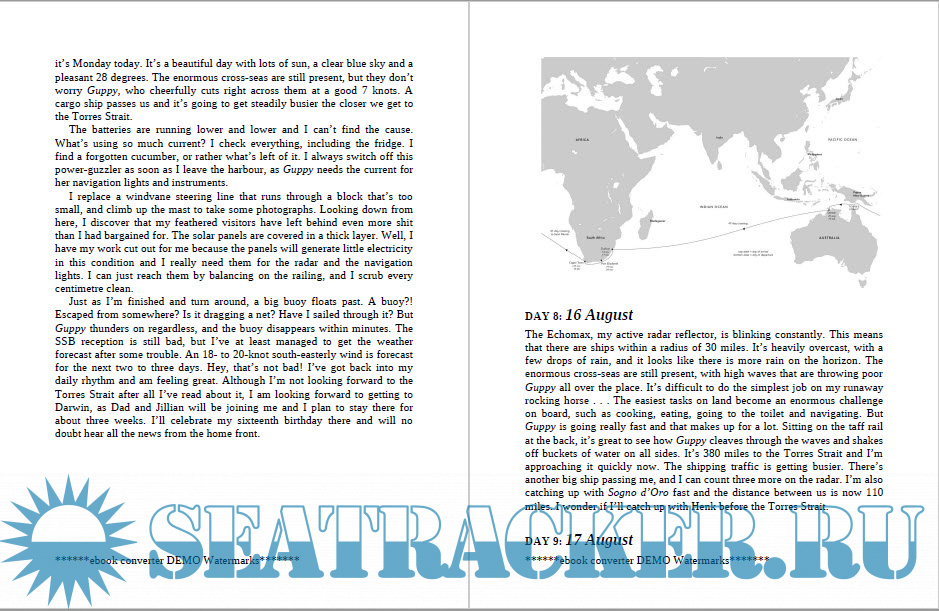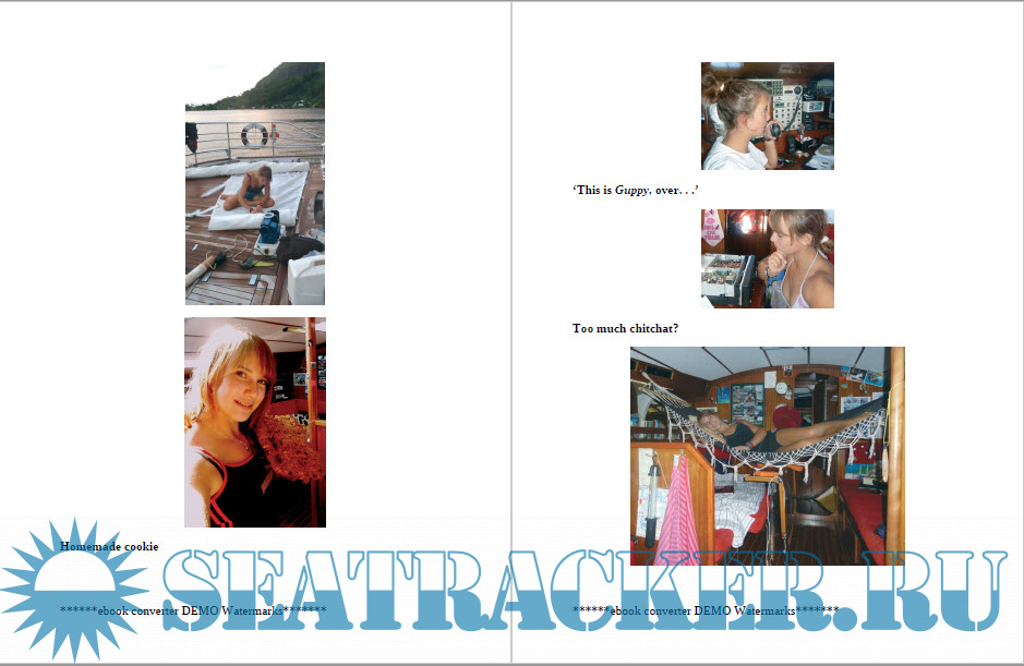 back to Polynesia. Off the Cape of Good Hope, he used a slingshot to fire a message home onto the deck of a tanker: ‘I am continuing non-stop towards the Pacific Islands because I am happy at sea, and perhaps also, to save my soul. Laura and I are not his only fans. This quote resonated with decades of sailors who wanted to escape the industrial machine and surged south to tropical climates on boats, to catch rainwater, eat fish, rice and bananas, navigate by sun and stars. It was a simple, healthy life that beckoned to many a kindred spirit troubled by the demands of civilisation, and more than 40 years later, one young lady had to fight long and hard for her right to join these ranks and happily sail around the world. And, when Laura Dekker finally broke free to busily prove all the naysayers wrong, I cheered her on.-How it all began? I am Laura and I was born in Whangarei, New Zealand. My parents were sailing around the world at the time and had been in New Zealand for two years. I became the youngest member of the crew when we made our way to Australia. They wanted to take their time to see as much of the world as possible. My sister Kim was born three years after me, and our 12-metre yacht eventually became too cramped for a family with two little girls. So we sailed back to the Netherlands where we moved into a real house for the first time. My parents’ journey had taken them seven years, and it was hard for Dad to live on firm land. He immediately started on the construction of an even bigger boat: a 20-metre, seaworthy Norwegian fishing cutter with enough room for everyone. Unfortunately, my parents’ marriage broke up and, at the age of six, I chose to stay with my father. We lived in a caravan for some time while he worked on the new boat.