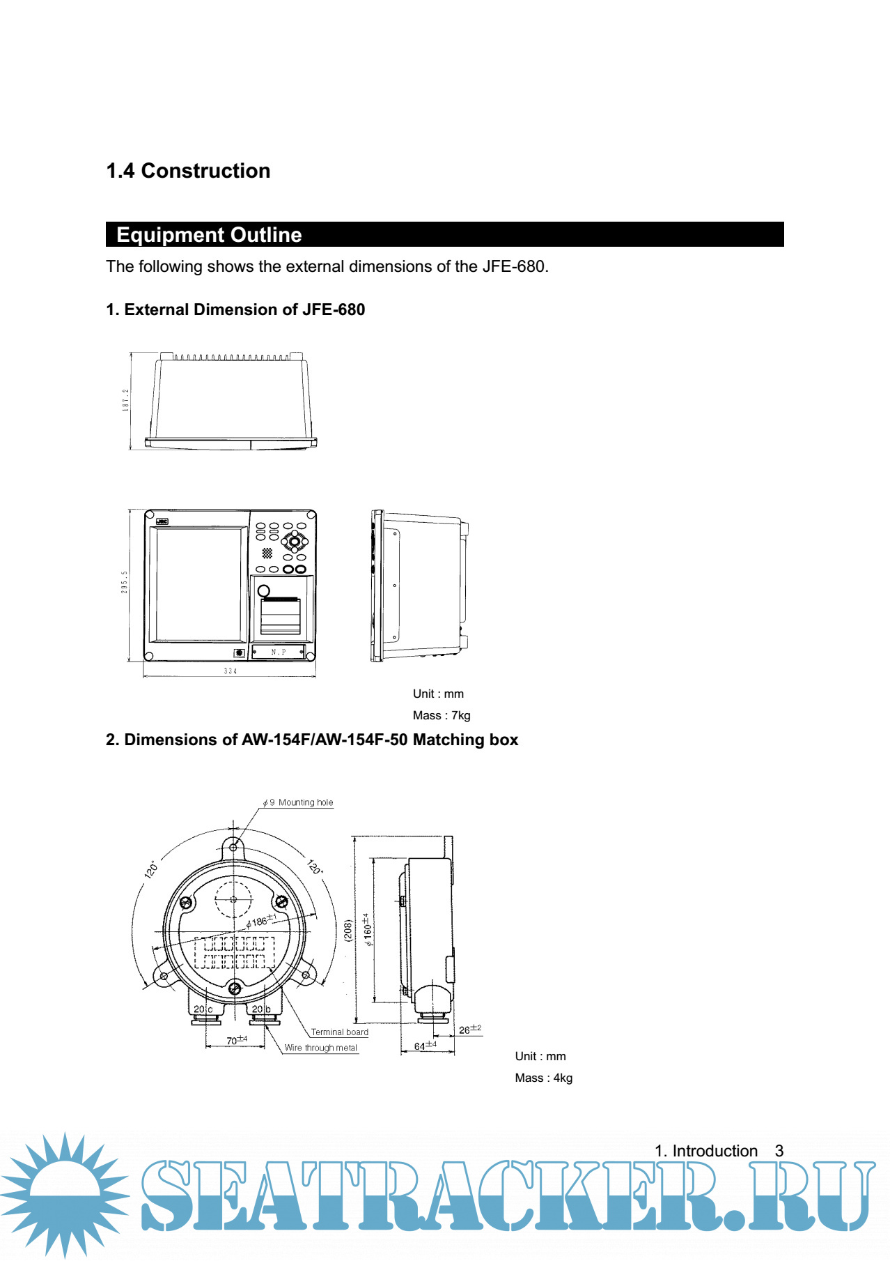 Description: The JFE-680 Echo-Sounder consists of a transducer mounted on the bottom of the ship's
