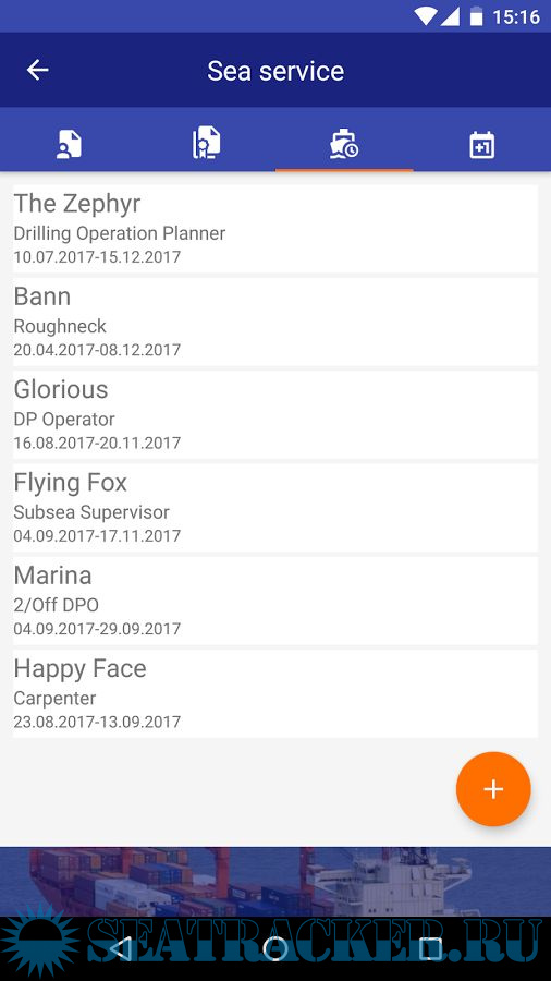 Year: 2017 Version: 2.05 Developer: BADOR Platform: Android System Requirements: Android 4.1 or higher Localization: english Crack: Not needed Description: Your ship, your rules. New App for Seafarers to help you to keep all certification, applications, sea service e.t.c. in one handy place - at your mobile. SeaMan’sBook is a simple tool which will make your job and life more easy! Additional info: At first use you need to create an account.