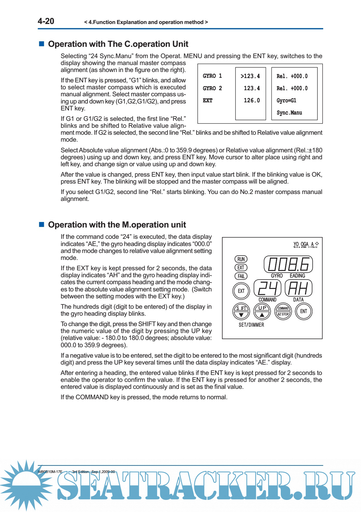 Various types of gyrocompass information can be displayed and set on the Master compass operation unit and remote unit.