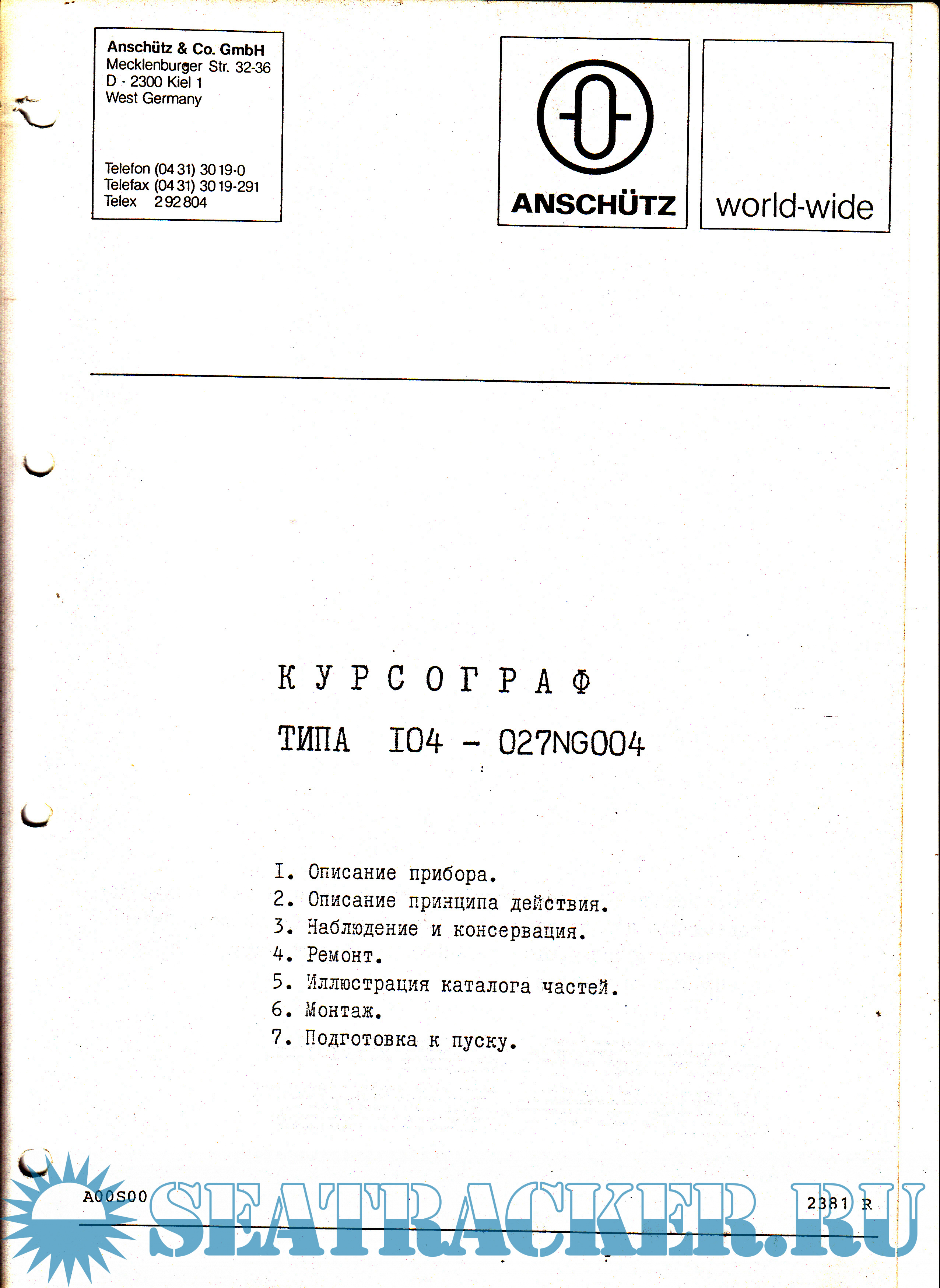 Инструкция для оборудования Anschutz