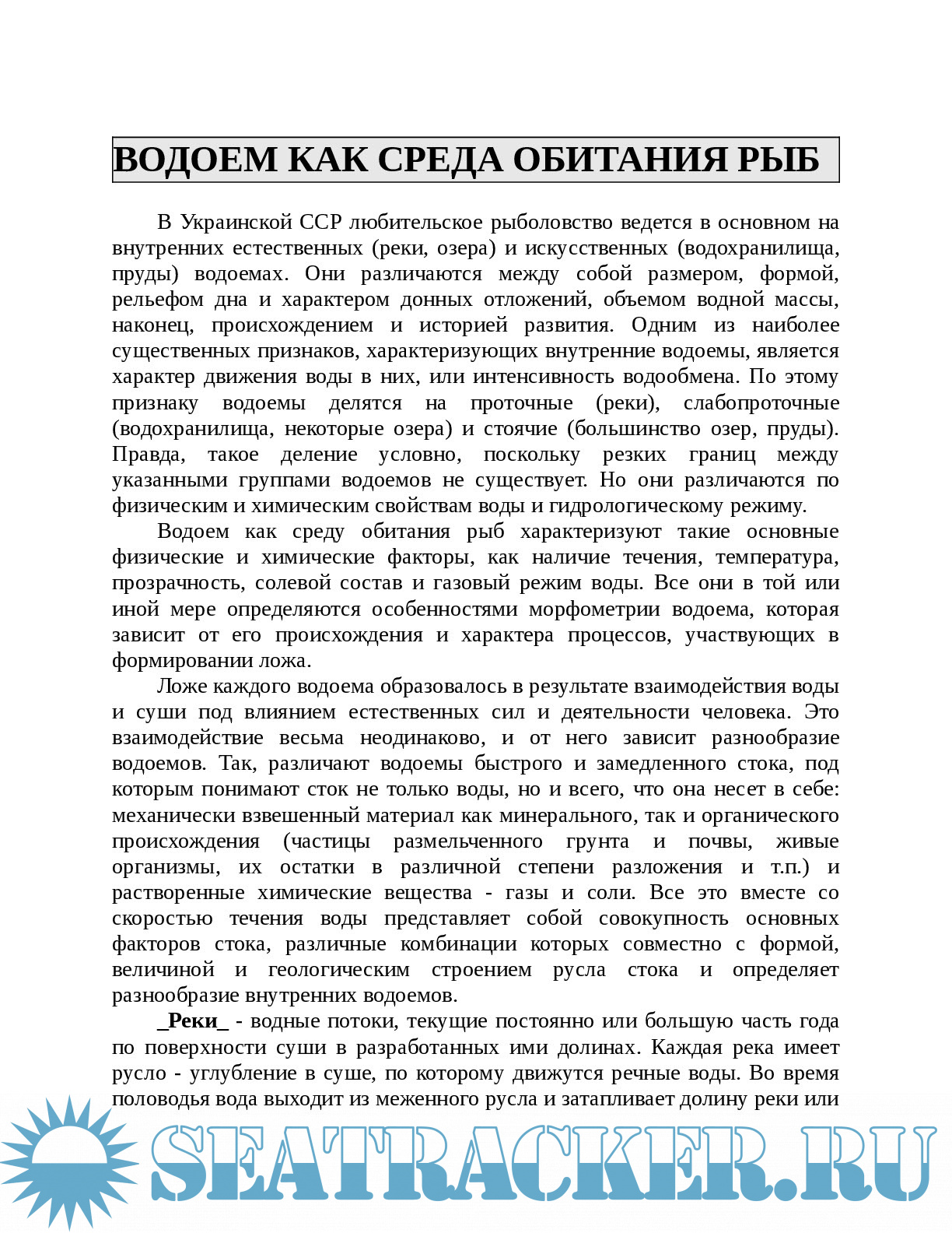 2. ВОДОЕМ КАК СРЕДА ОБИТАНИЯ РЫБ